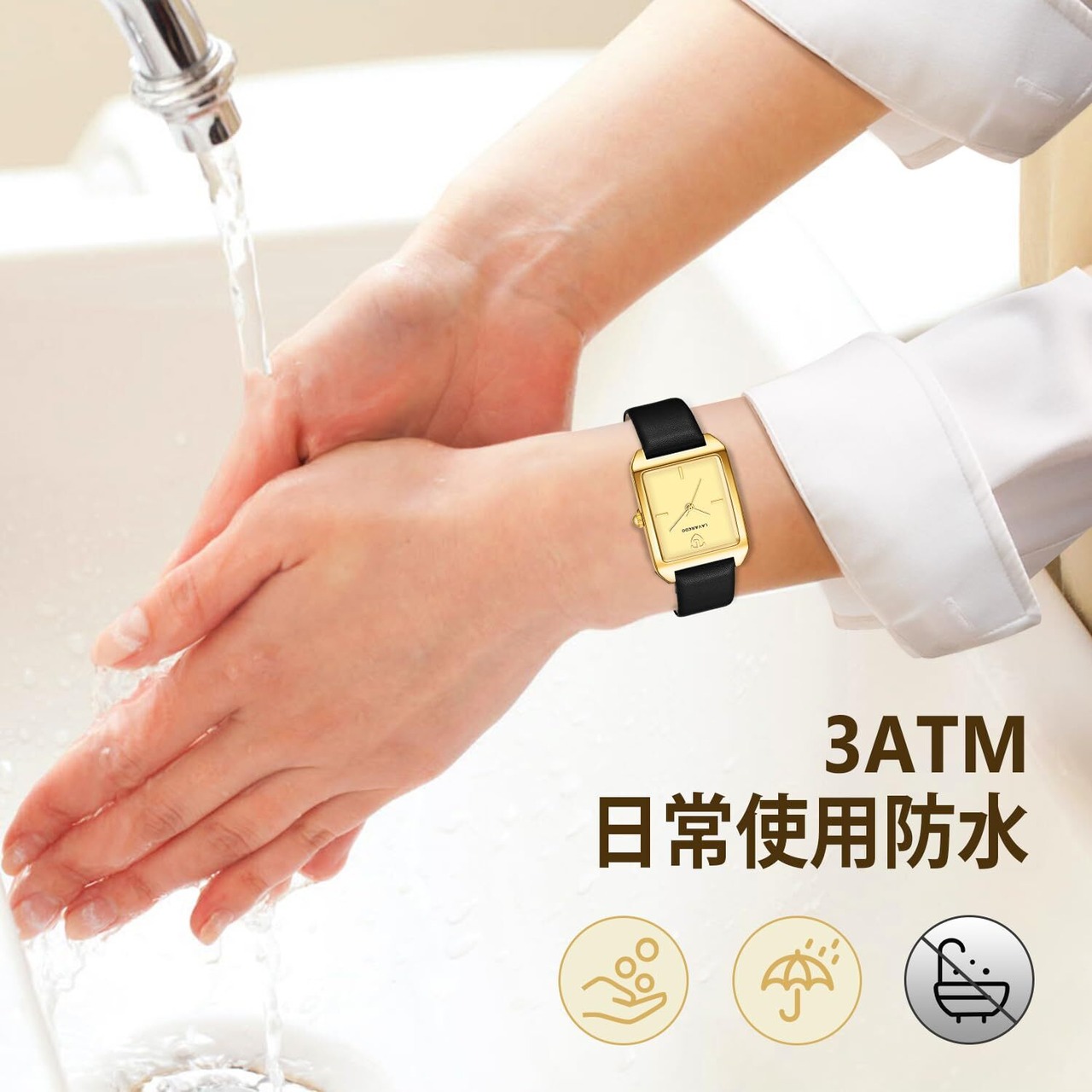 防水腕時計:生活防水・汗・雨などの日常の水滴レベルに耐えられる防水性能があり、水泳、温泉、入浴、サウナなどの場合で腕時計を外す必要があります。