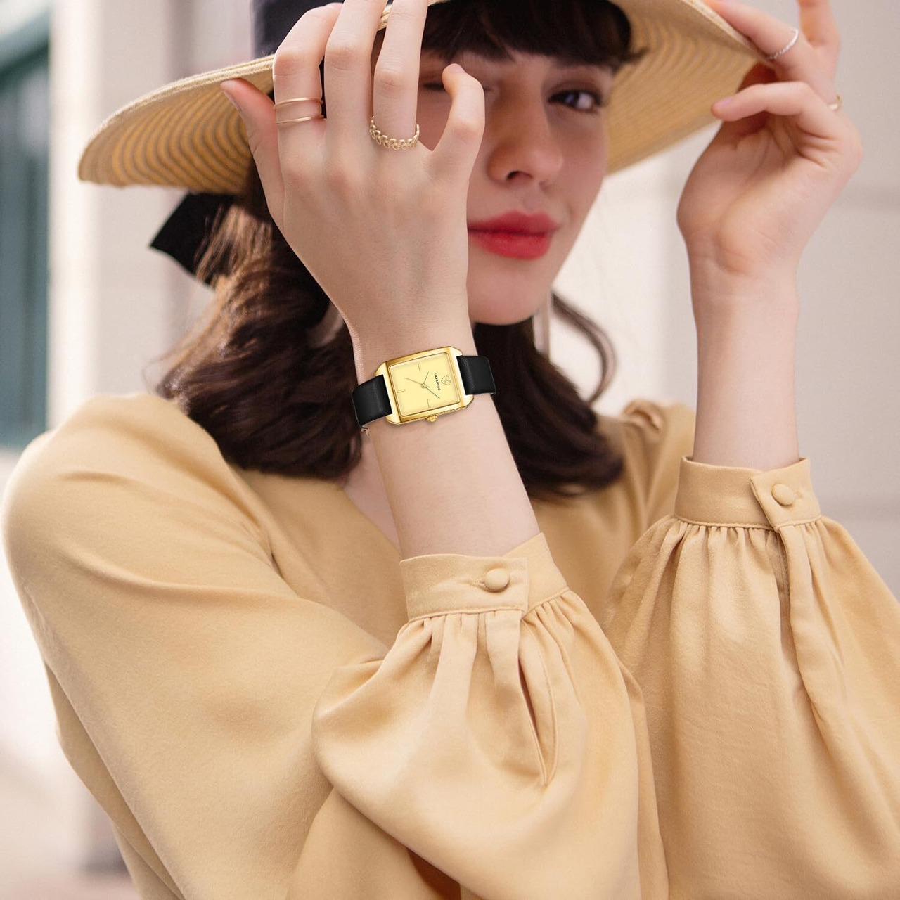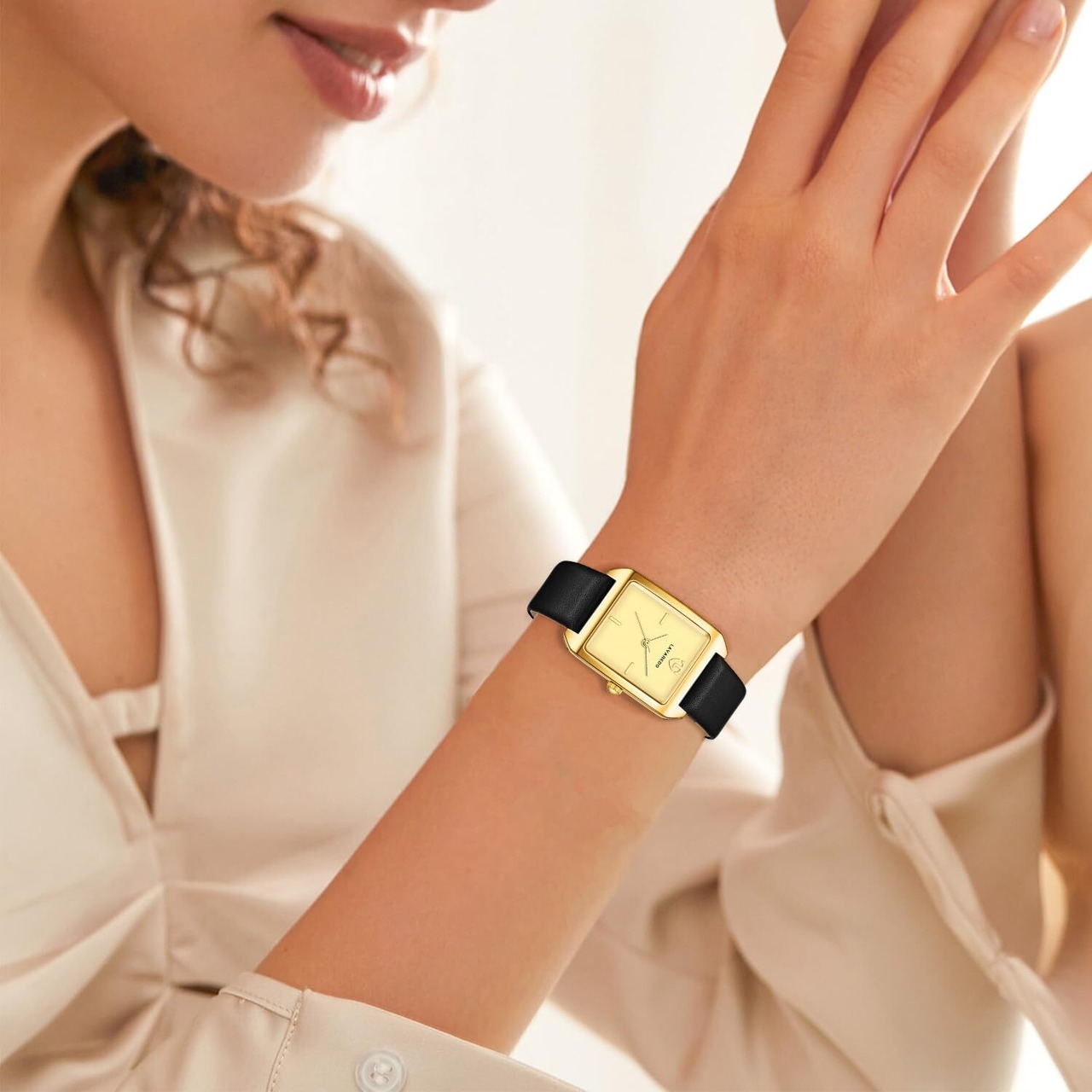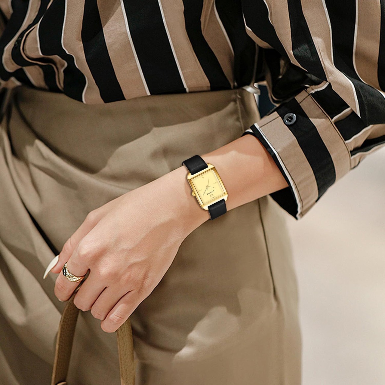 レトロな女性腕時計:クラシックでレトロなレディース腕時計、高品質の樹脂ガラス文字盤/レトロな長方形文字盤/洗練された革ベルトは、日常のシーンに適しており、パーティー、パーティー、結婚式の着用にも対応しています。