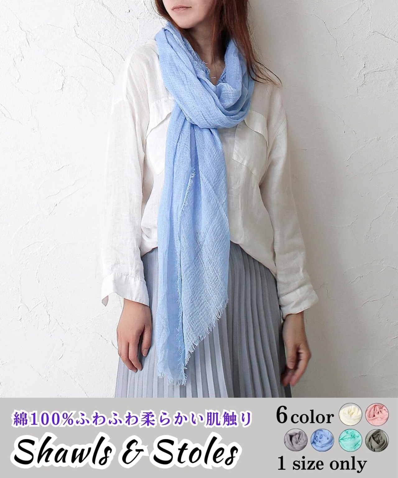 【 軽×薄×柔 ストール】オールシーズン使える万能ストールです。春 夏の冷房対策や UVカット=紫外線対策、秋 冬の防寒対策まで一年中活躍する大判ショールです。軽くて薄い柔らかいコットン素材が優しく肌を包み込み、長時間の使用でも快適な着け心地を提供します。◉軽くて薄手、コンパクトに折りたためるので、バッグの中に入れて持ち運びも楽。スペースを取らないです。◉大判サイズ縦95×横190㎝でアレンジ自由自在です。さまざまな巻き方やアレンジが楽しめます。首に巻くだけでなく、肩にかけたり、ひざ掛けとして使用したり、ポンチョ風に羽織ることも可能です。