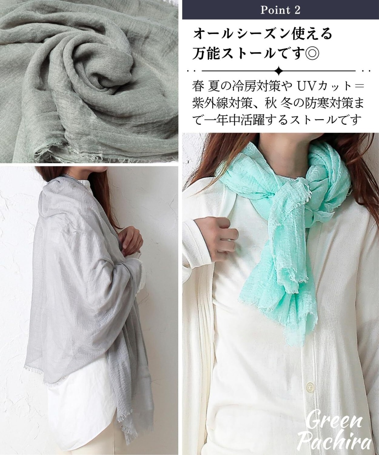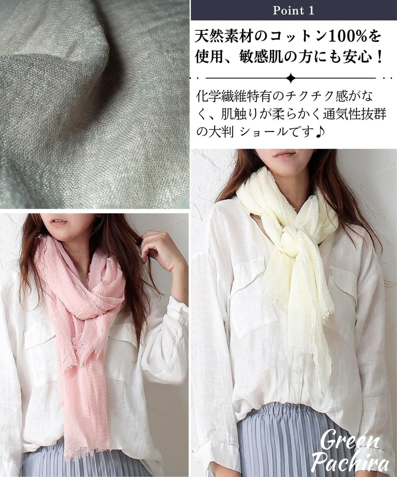 [グリーンパキラ] ショール 大判 ストール レディース 綿100% コットン UVカット 春 夏 薄手 無地 柔らかい 結婚式 冷房対策 50代 贈り物 母親 誕生日プレゼント 実用的 日焼け対策