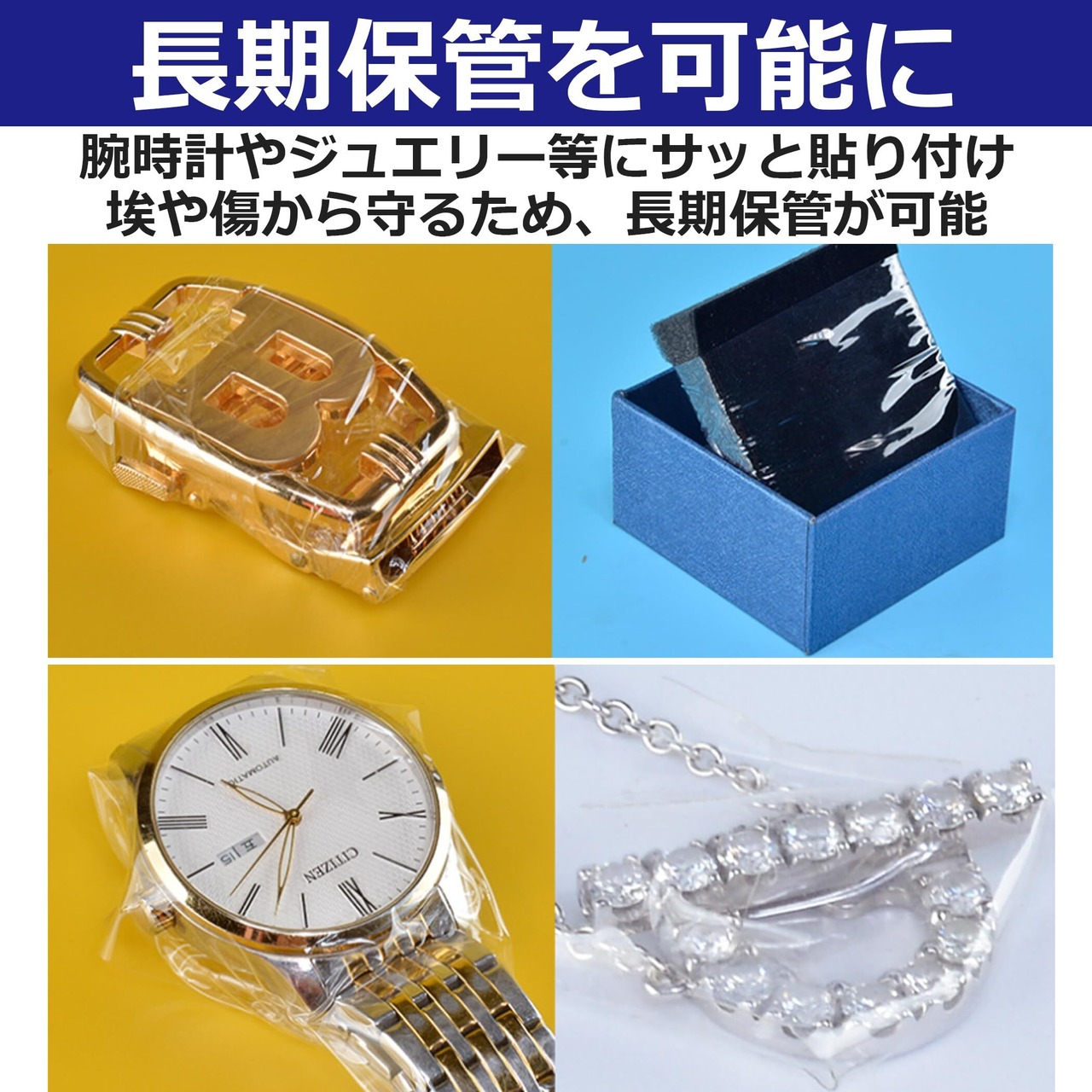 【長期保管で守る】腕時計やジュエリーを長期間使用しない場合にサッとテープを貼り付けておくことで埃や傷から守り、綺麗に保管することが可能です。メガネや他の落としやすいアイテムにも便利で、保管時の心配を減らします。