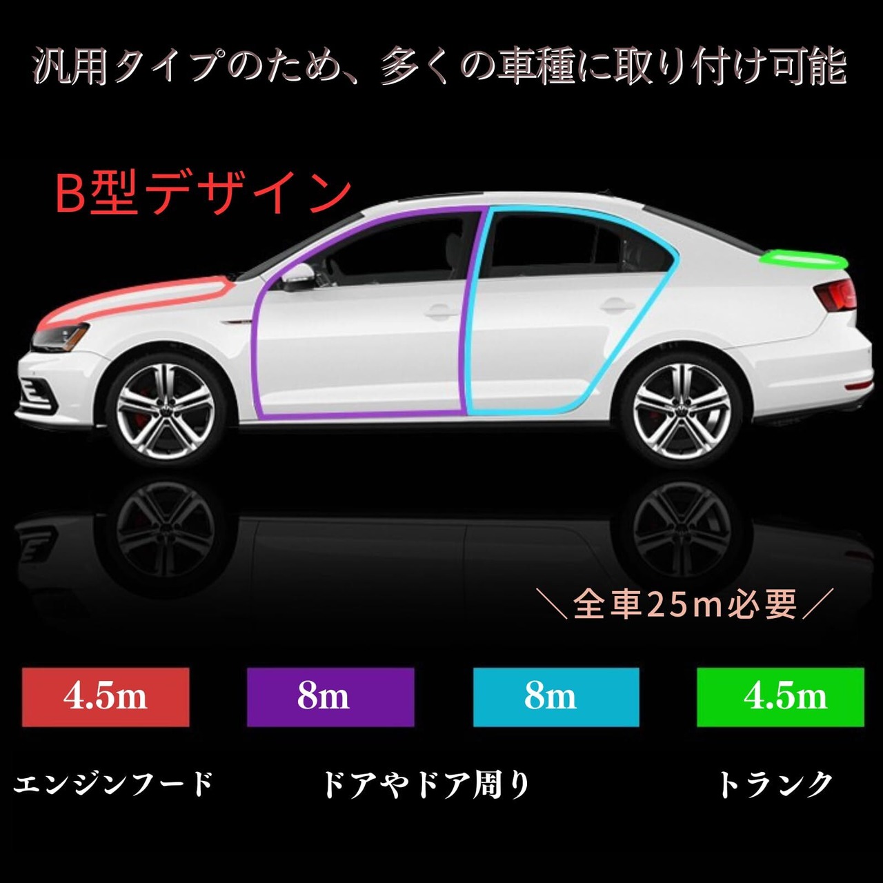 【多用途】B型デザインで、ドアやドア周り、エンジンフード、トランクなど幅広い場所に対応。汎用タイプのため、多くの車種に取り付け可能です。
