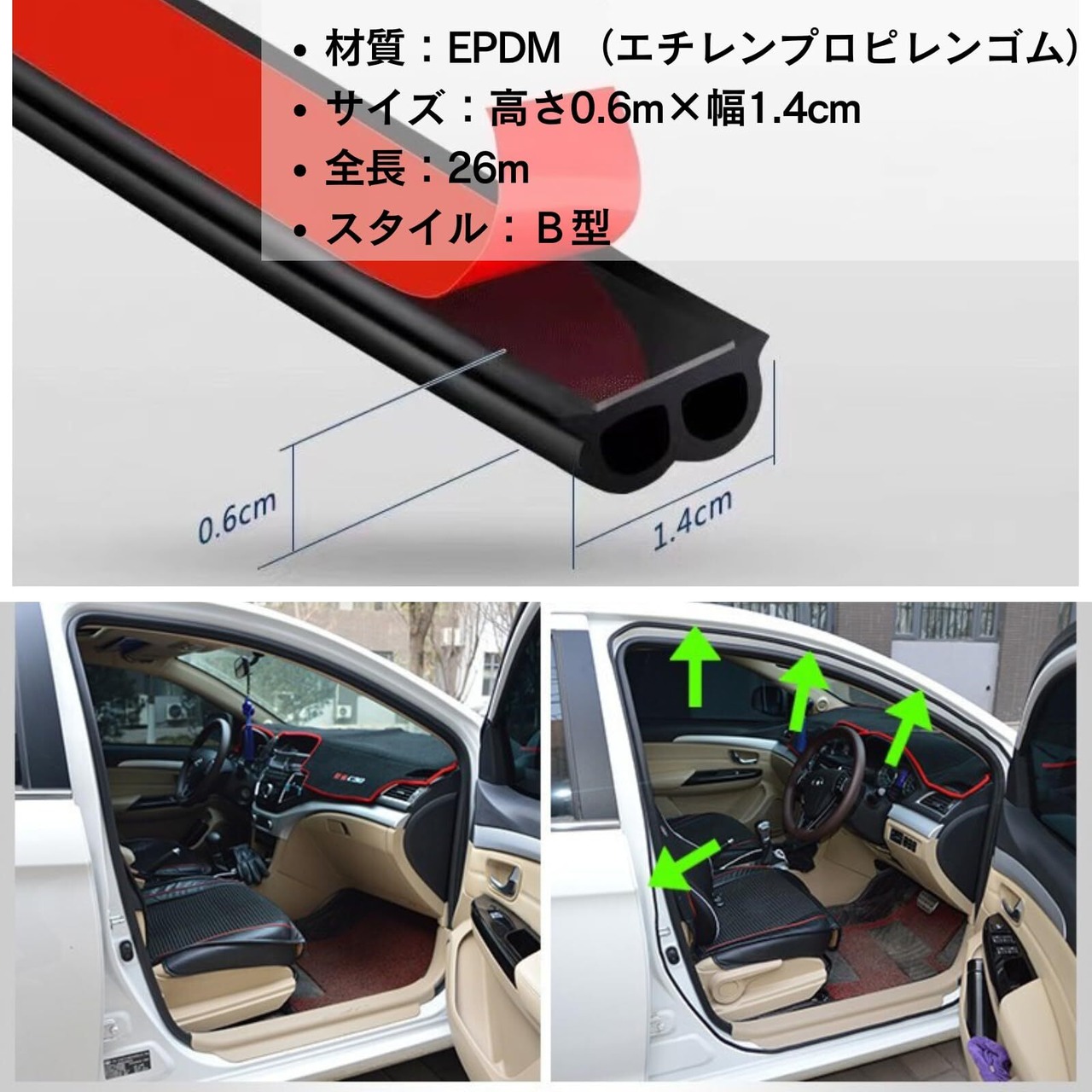 Quikaboo ウェザーストリップ 車用ドアモール B型 26m 静音モール 風切り音防止テープ 防音 汎用 車ドアエッジガード ドアガード
