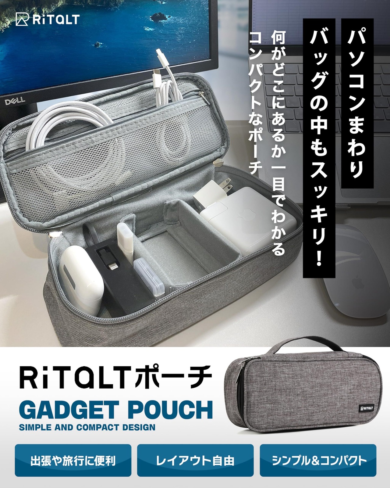 RiTaLT ガジェットポーチ 小型 ポーチ 小物入れ 小さめ ガジェットケース 【コンパクトに収納!何がどこにあるか一目でわかる!】 旅行用 出張 (チャコールグレー)