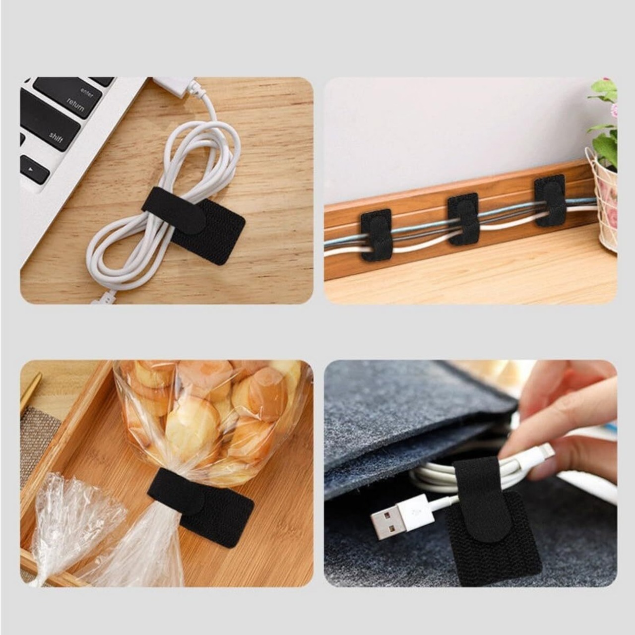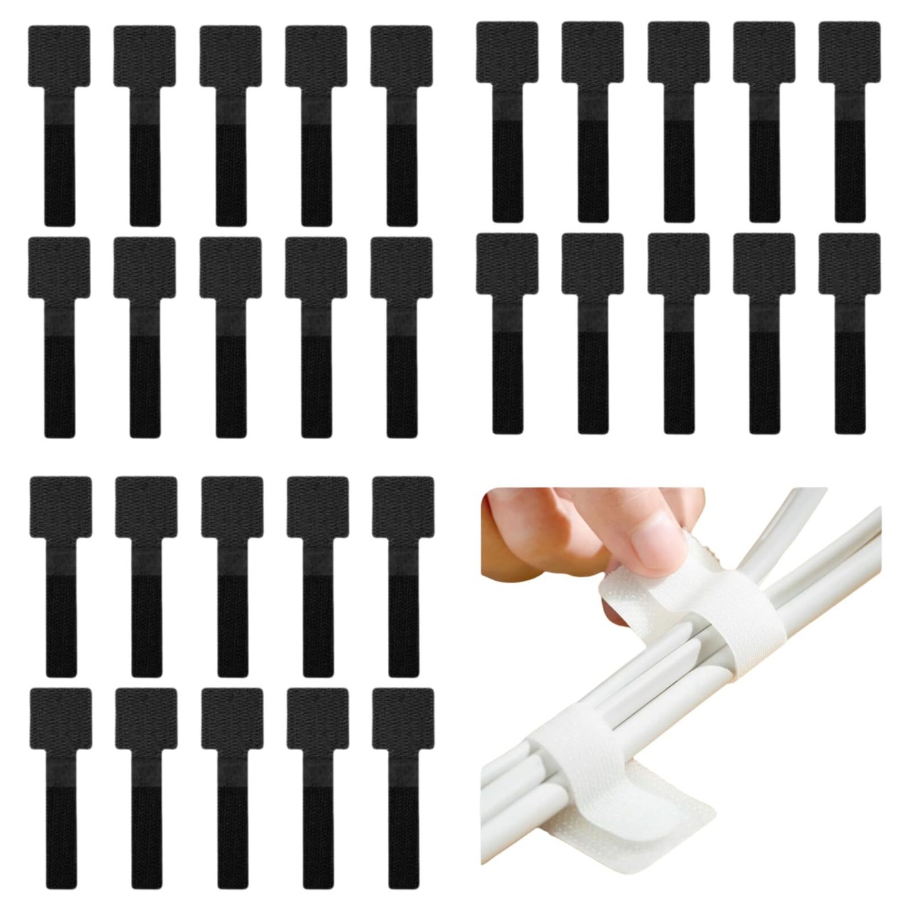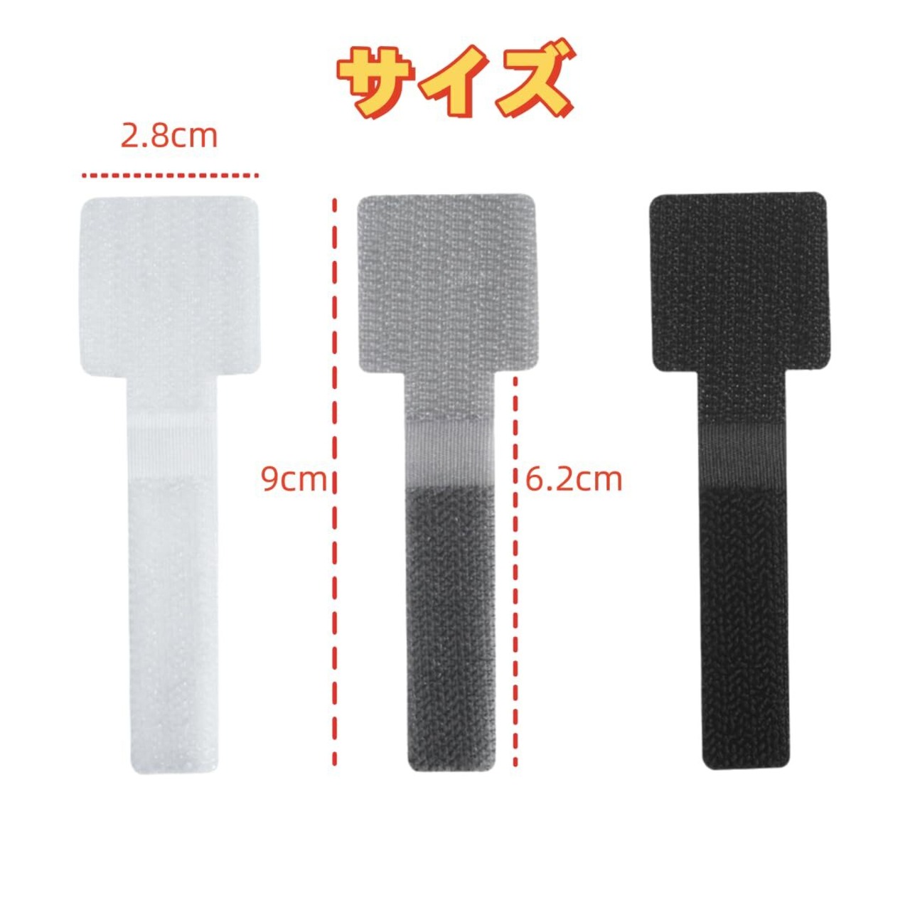 ケーブルクリップ ケーブルホルダー マジックテープ 配線止め 配線 整理 ケーブル 収納 結束バンド ナイトテーブル 車 家庭 電源コード 強力粘着テープ付き30個セット (ブラック)