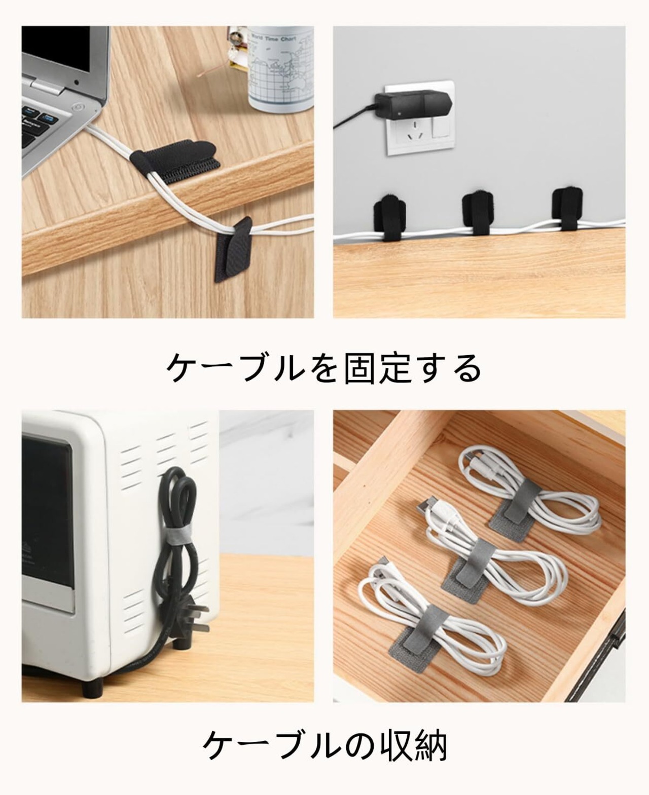 用途:ケーブルクリップはタイル、ガラス、金属などの滑らかな表面への塗布を推奨します。電源コード、充電ケーブル、コンピューターケーブルなどの整理整頓に適しています。また、ファンヒーターなどの季節家電を収納する際に電源ケーブルを本体にくっつけて収納できます