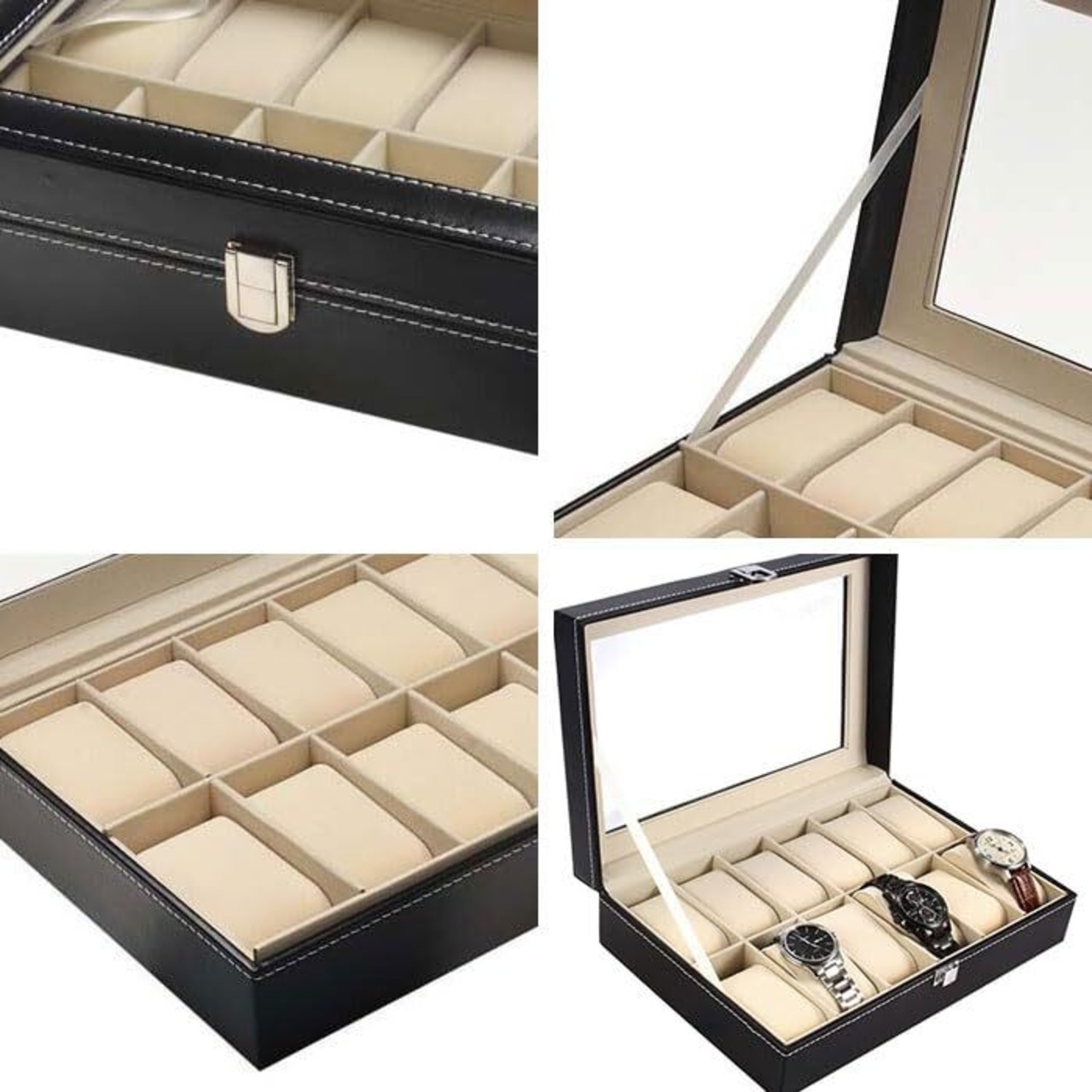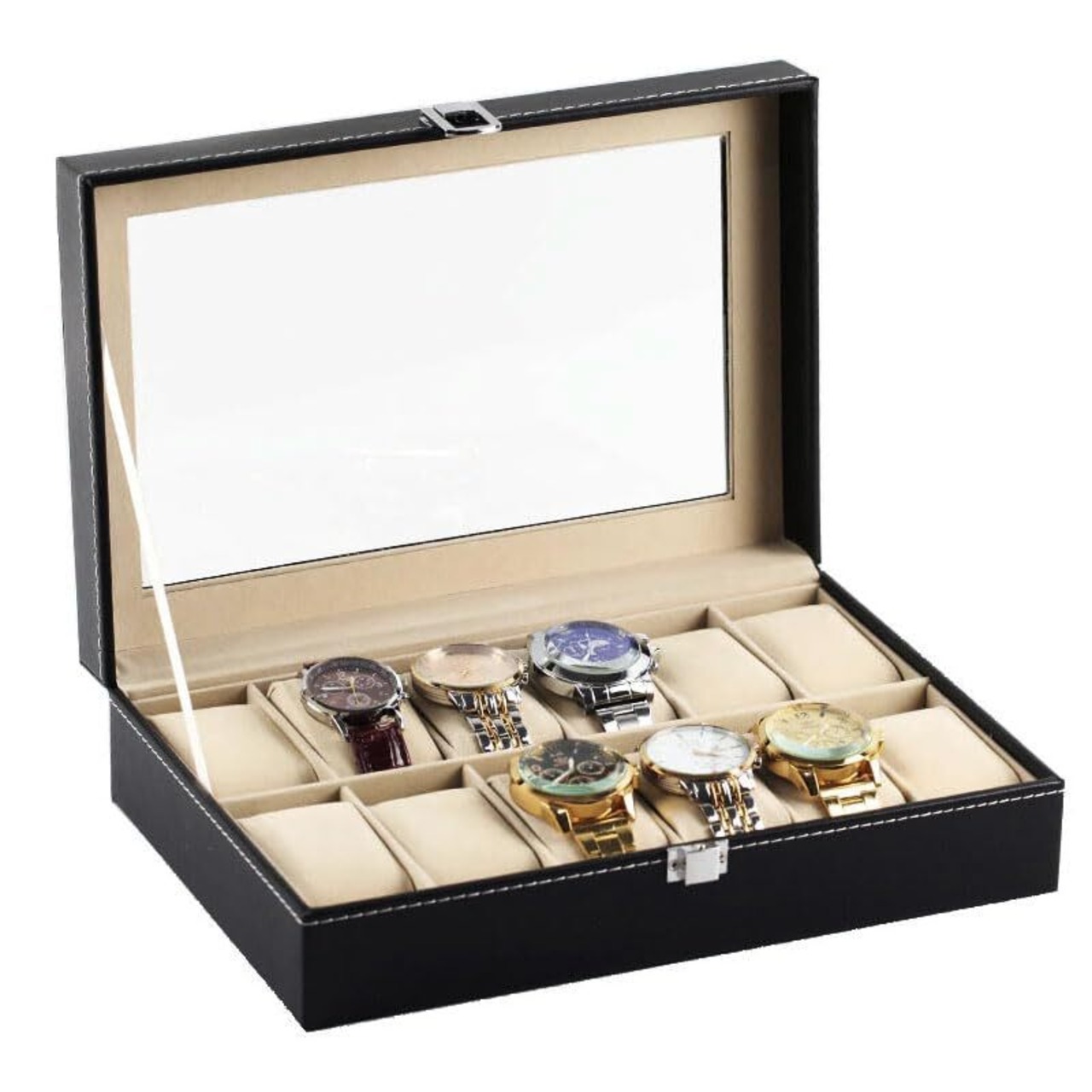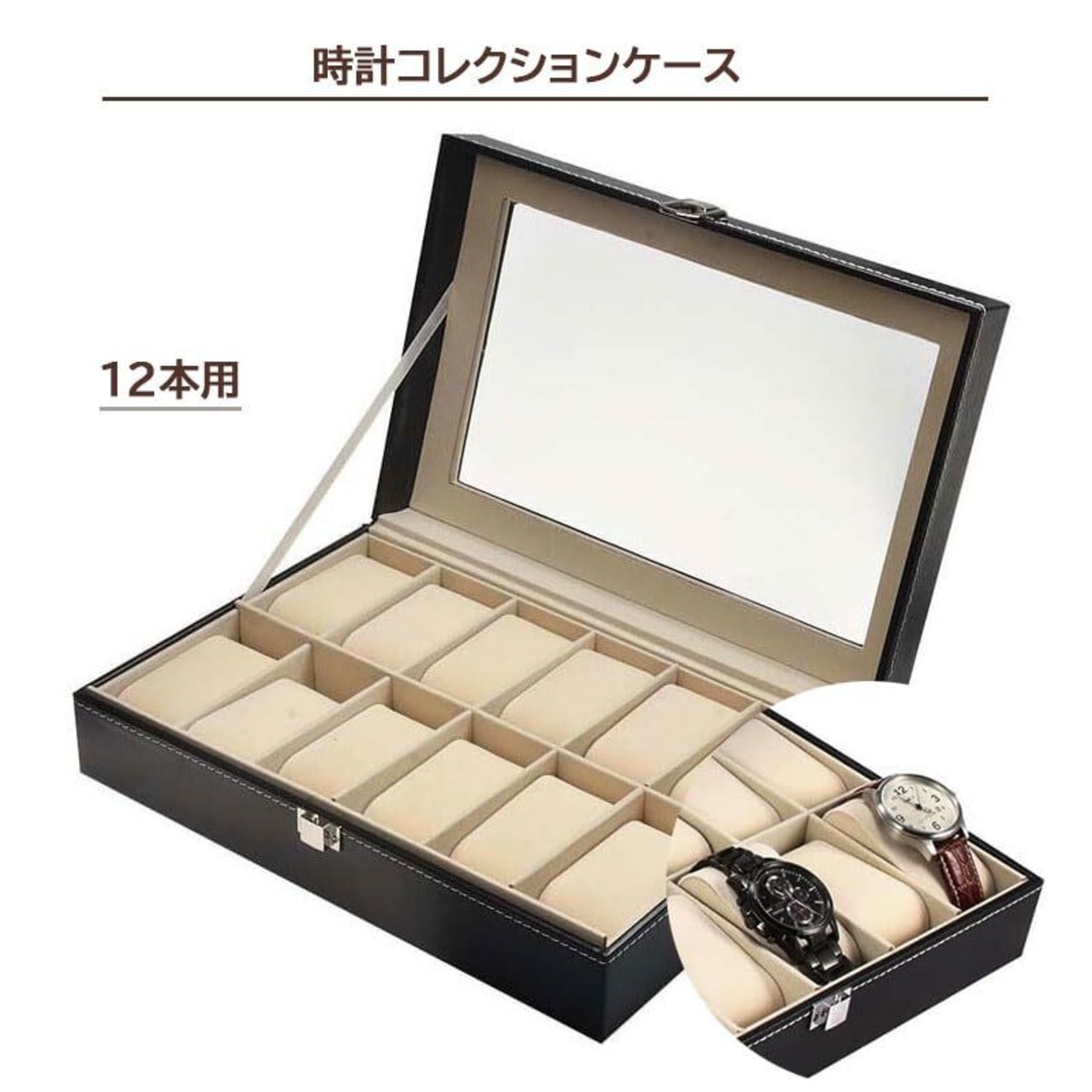 腕時計コレクションケース 12本用 収納 ケース ボックス アクセサリー 時計 ウォッチ ケース PUレザー製 ディスプレイ 保管 インテリア メンズ レディース ブラック