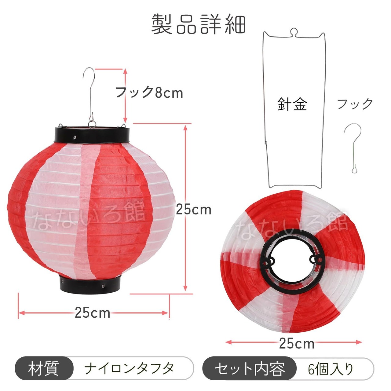[なないろ館] カラー ちょうちん 6個セット ナイロン製 提灯 お祭り 七夕 花火大会 装飾 夏祭り 文化祭 屋台 赤ちょうちん お神輿 みこし 6色