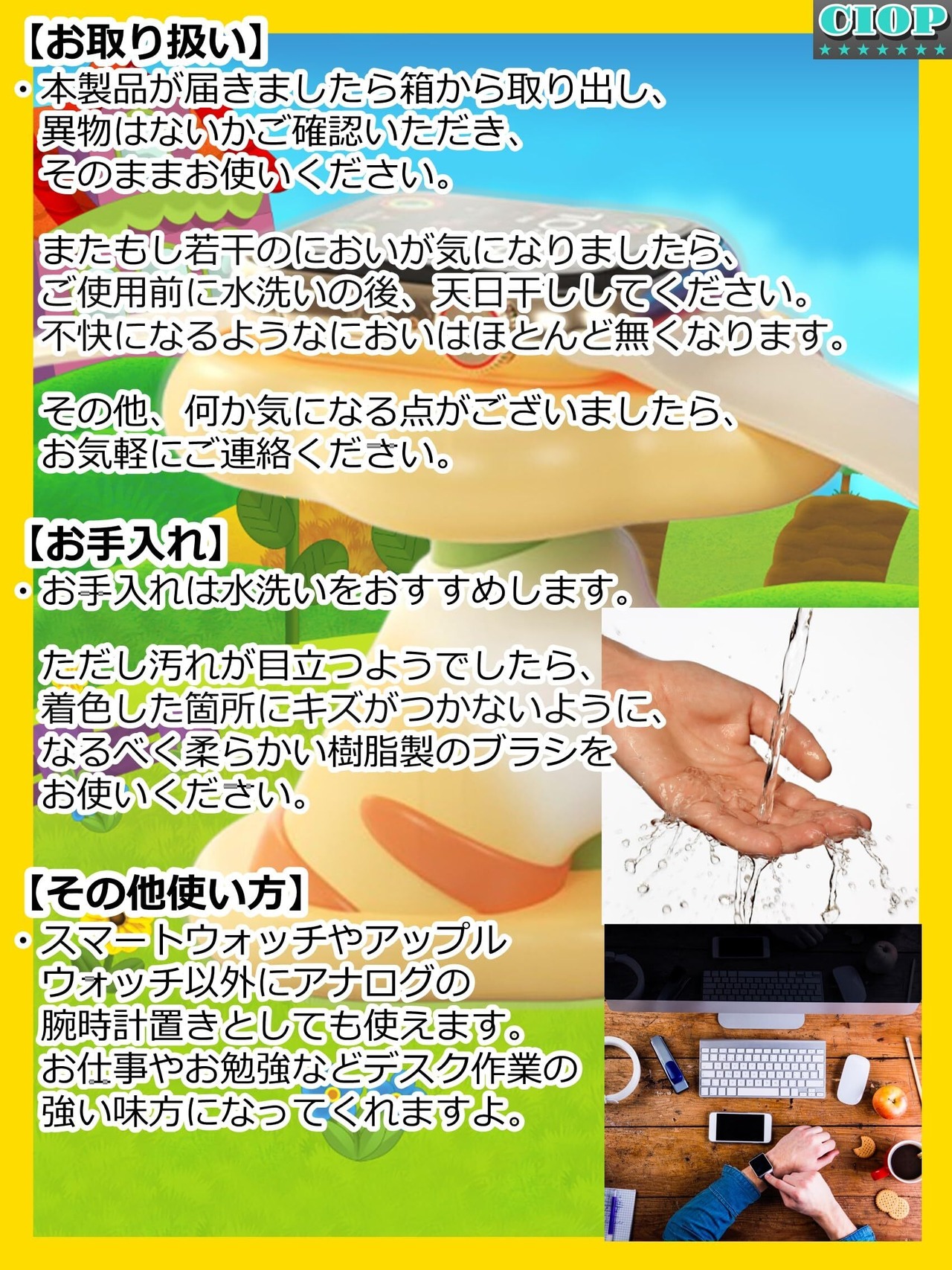 【取り扱い】:本製品が届きましたら箱から取り出し、異物はないかご確認いただき、スマートウォッチをセットしお使いください。またメモスタンドや写真立てなど、使い方もご想像しながら自由に楽しんいただけます。
