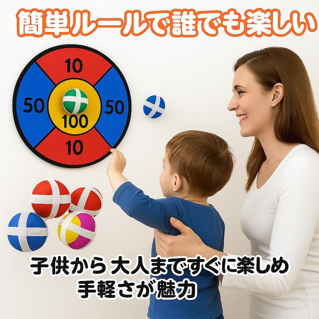 【簡単ルールで誰でも楽しめる】ボールを的に向かって投げるだけなので、特別な技術は不要。子どもから大人まで、誰でもすぐに楽しめる手軽さが魅力です