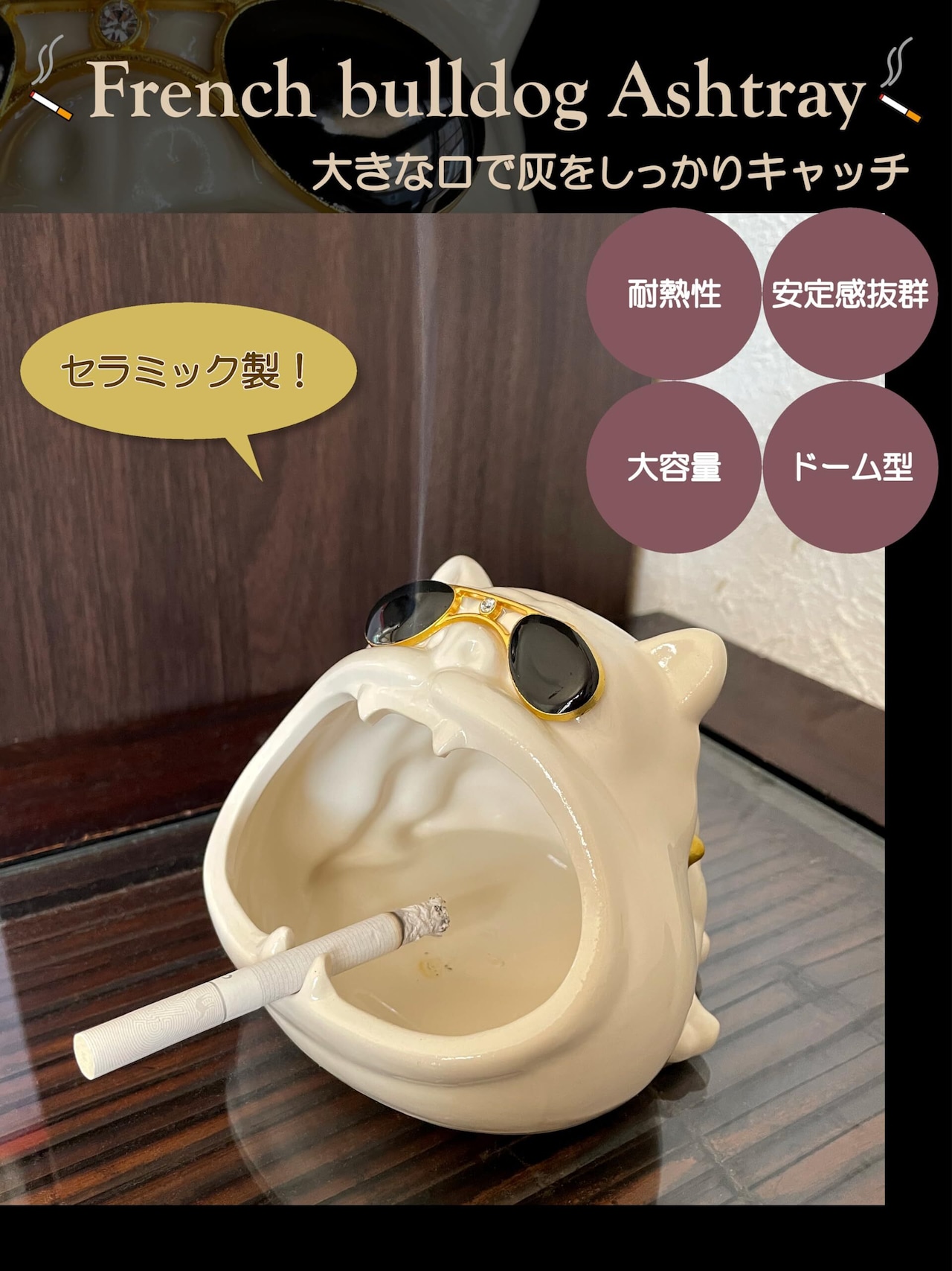 【犬好きにはたまらない癒しのインテリア】 遊び心のあるフレンチブルドッグの表情とサングラスデザインが、タバコタイムをより楽しく演出。灰皿としてだけでなく、小物入れやインテリアオブジェとしても活躍。愛犬家やペット好きな方へのプレゼントとしても喜ばれ、話題性のあるアイテムです。