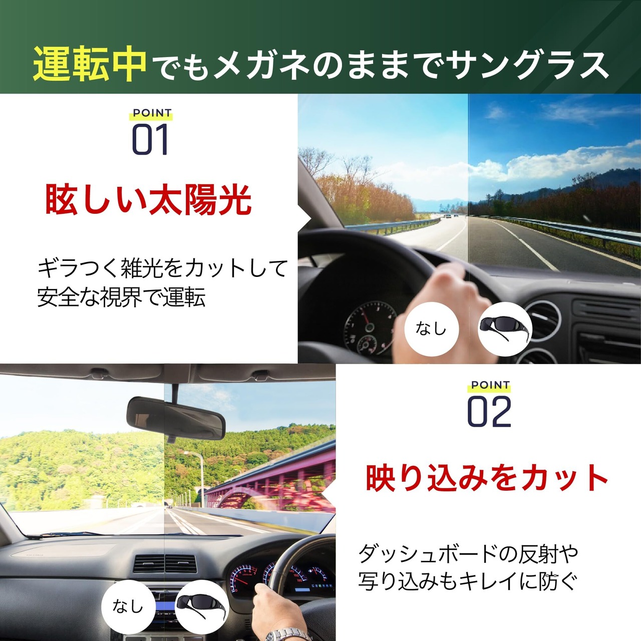 【眼鏡の上から掛けられるオーバーサングラス】メガネの上からそのまま掛けられる偏光サングラスです。メガネの上からだけでなく、メガネなしでも掛けられます。