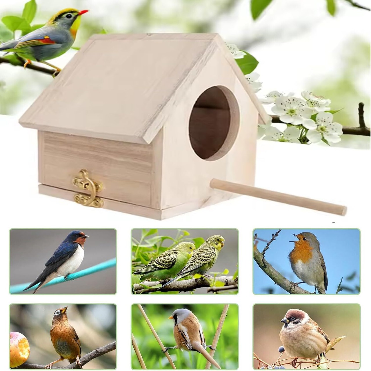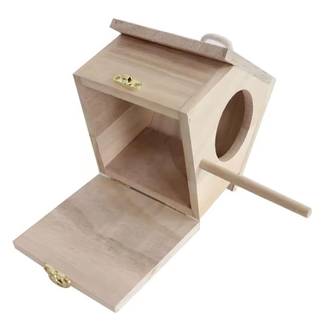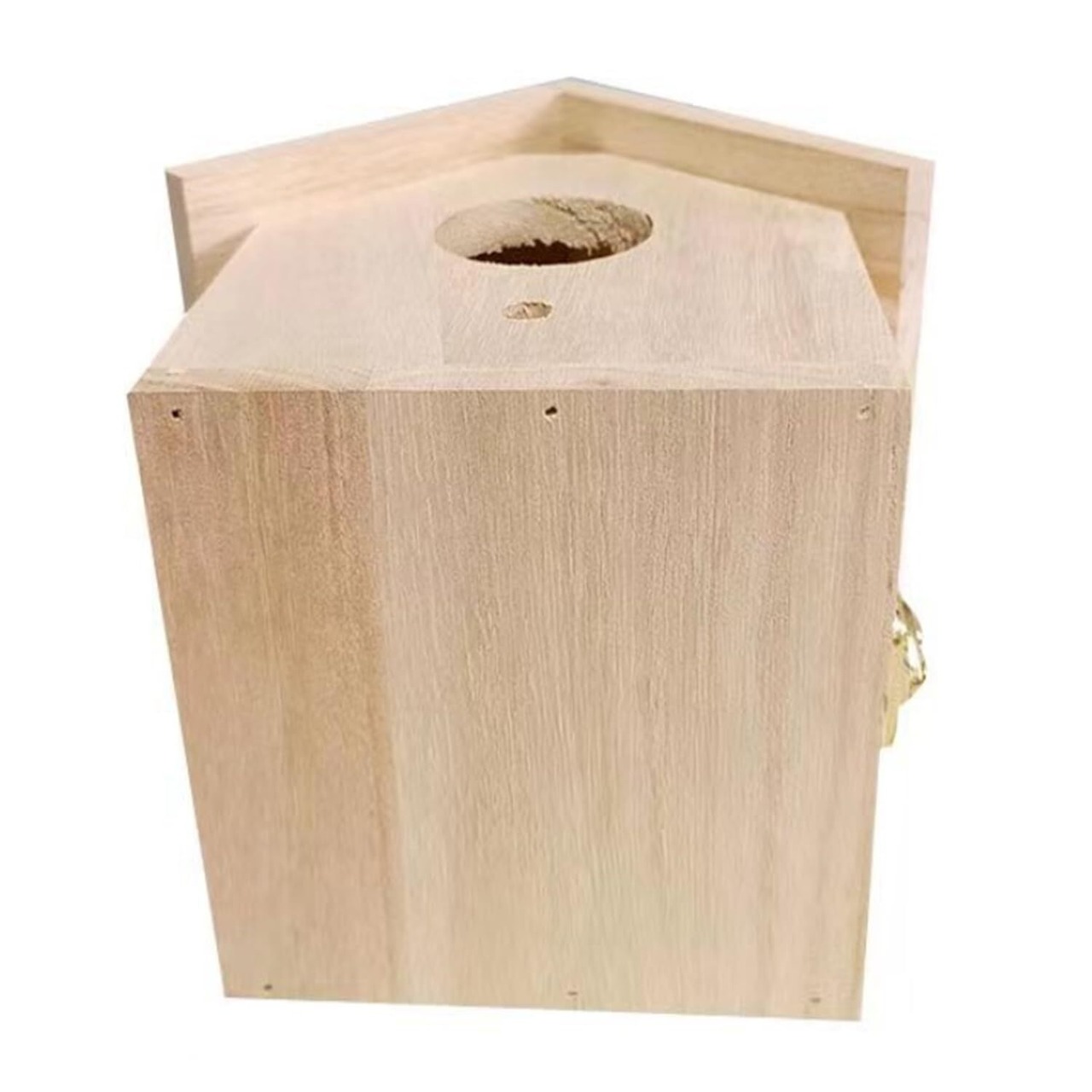 【屋外でも安心の木製アクリル鳥小屋】耐候性に優れた天然木材と透明アクリルを使用した鳥の巣箱。雨や日差しに強く、屋外でも長期間設置できます。前面にアクリル観察窓があり、巣作りや子育て中の野鳥の様子を外から確認可能。自然観察や教育にも役立つバードウォッチング用鳥小屋です。