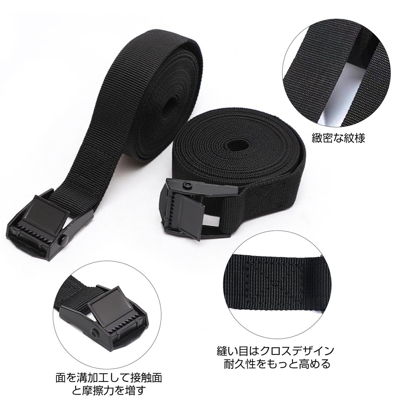 【耐久性】 1.ベルトはポリプロピレンで、引張りが強いだけではなく、使用中に荷物も傷つけない高品質ものです。丈夫な柔軟性と耐久性が優れています。また、耐久性をもっと高めるために、縫い目はクロスデザインを採用しています。 2.カムバックルは亜鉛合金で、強力な耐酸アルカリ、錆びに強く、丈夫な耐摩耗性がある高密度の金具です。長期間に使えます。
