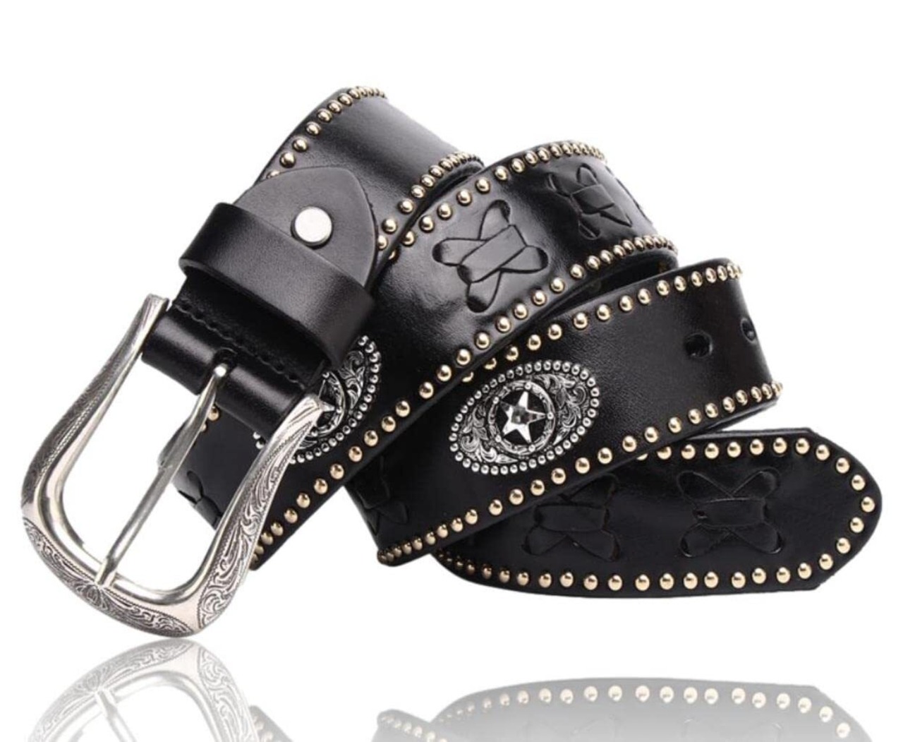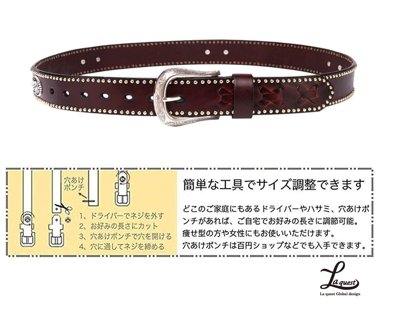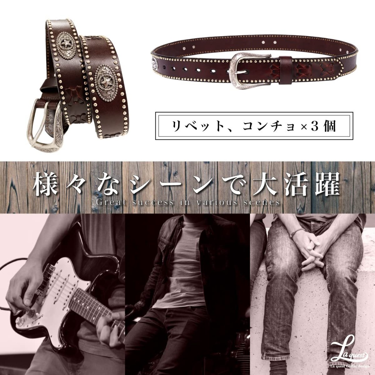 [Laquest] ウエスタン メンズ ベルト 牛革 レザー コンチョ 編み革 カジュアル