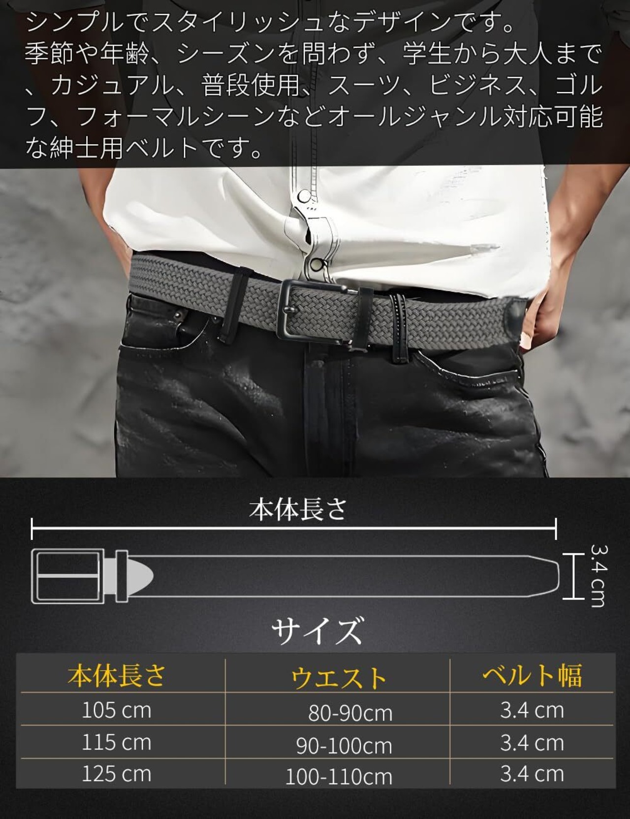 [BIGHAS] ベルト メンズ メッシュベルト 編み込み 穴なし ブランド カジュアル ビジネス フリーサイズ 大きいサイズ おしゃれ 伸縮 ゴルフ 丈夫 長持ち シンプル 黒 布製 長い 学生 仕事 スーツ