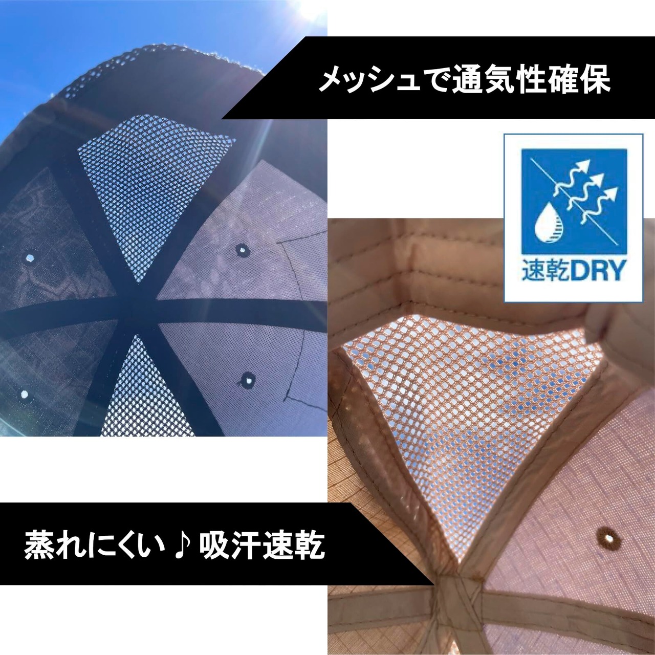 【メッシュ通気性確保】側面にはメッシュを配置し、通気性を確保しています