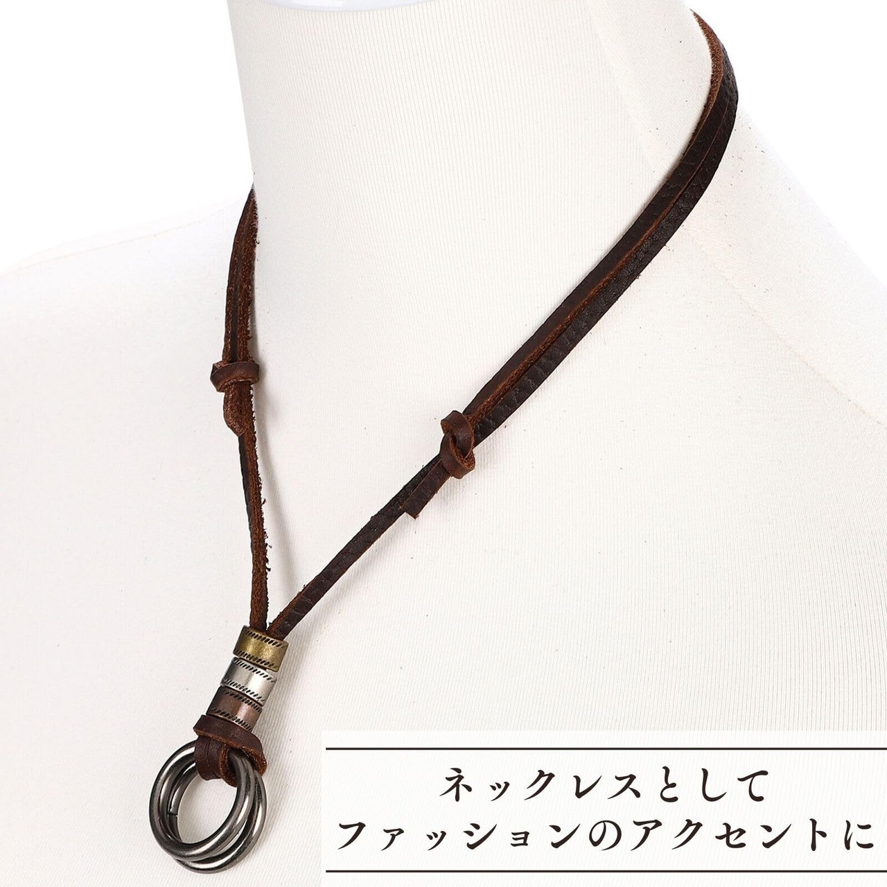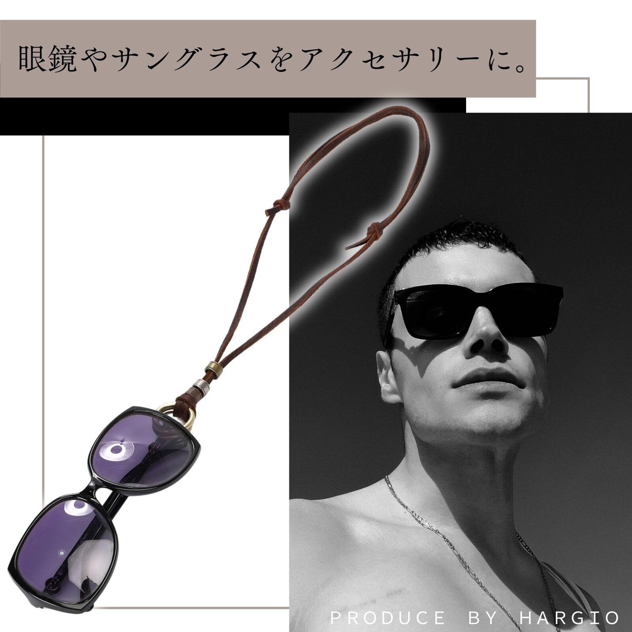 金属のリングと牛革の質感が◎ 眼鏡やサングラスがおしゃれのワンポイントに! 長さ調整も可能です!