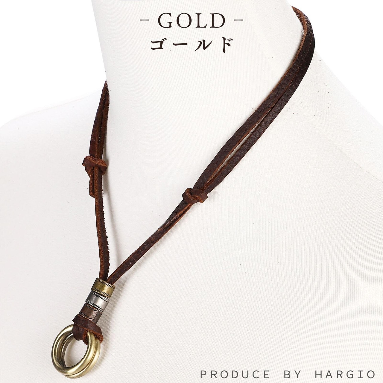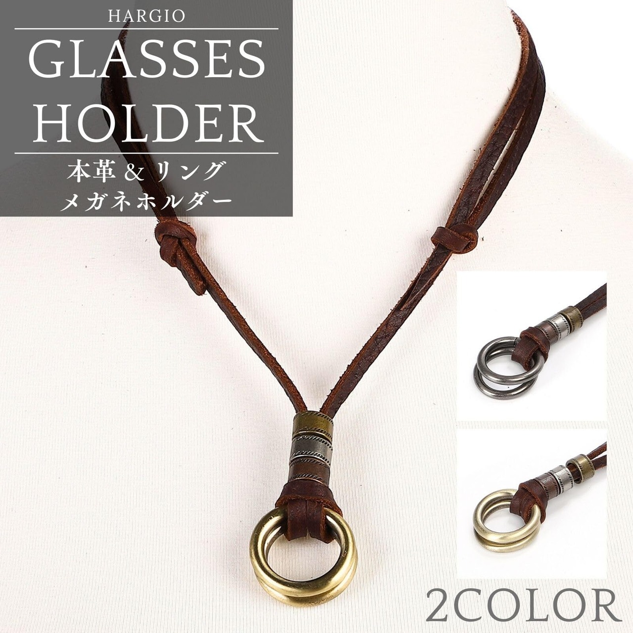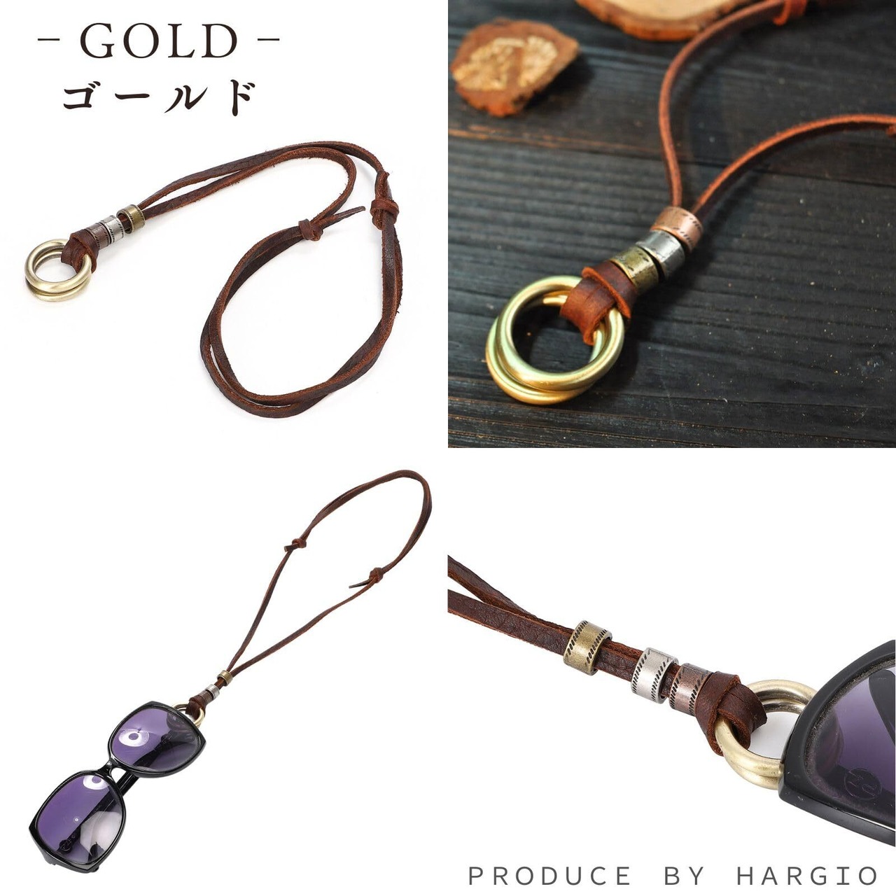 [ハルジオ] メガネホルダー ネックレス 眼鏡 サングラスホルダー メガネ サングラス メンズ レザー リング 革紐 本革 眼鏡 サングラス ストラップ メガネストラップ メンズネックレス 人気 おしゃれ シルバー ゴールド (ゴールド)
