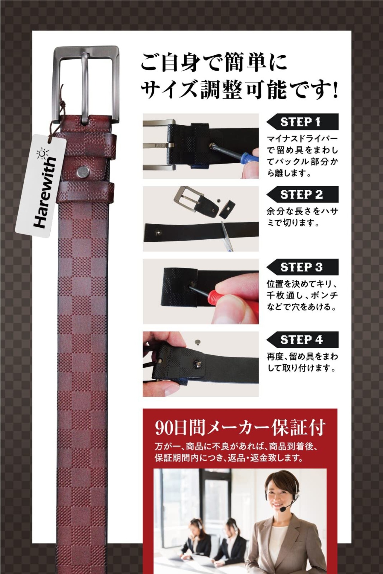 [Harewith] ベルト メンズ カジュアル ゴルフ 本革 大きいサイズ 長さ調整可能 市松模様 チェック柄 父の日