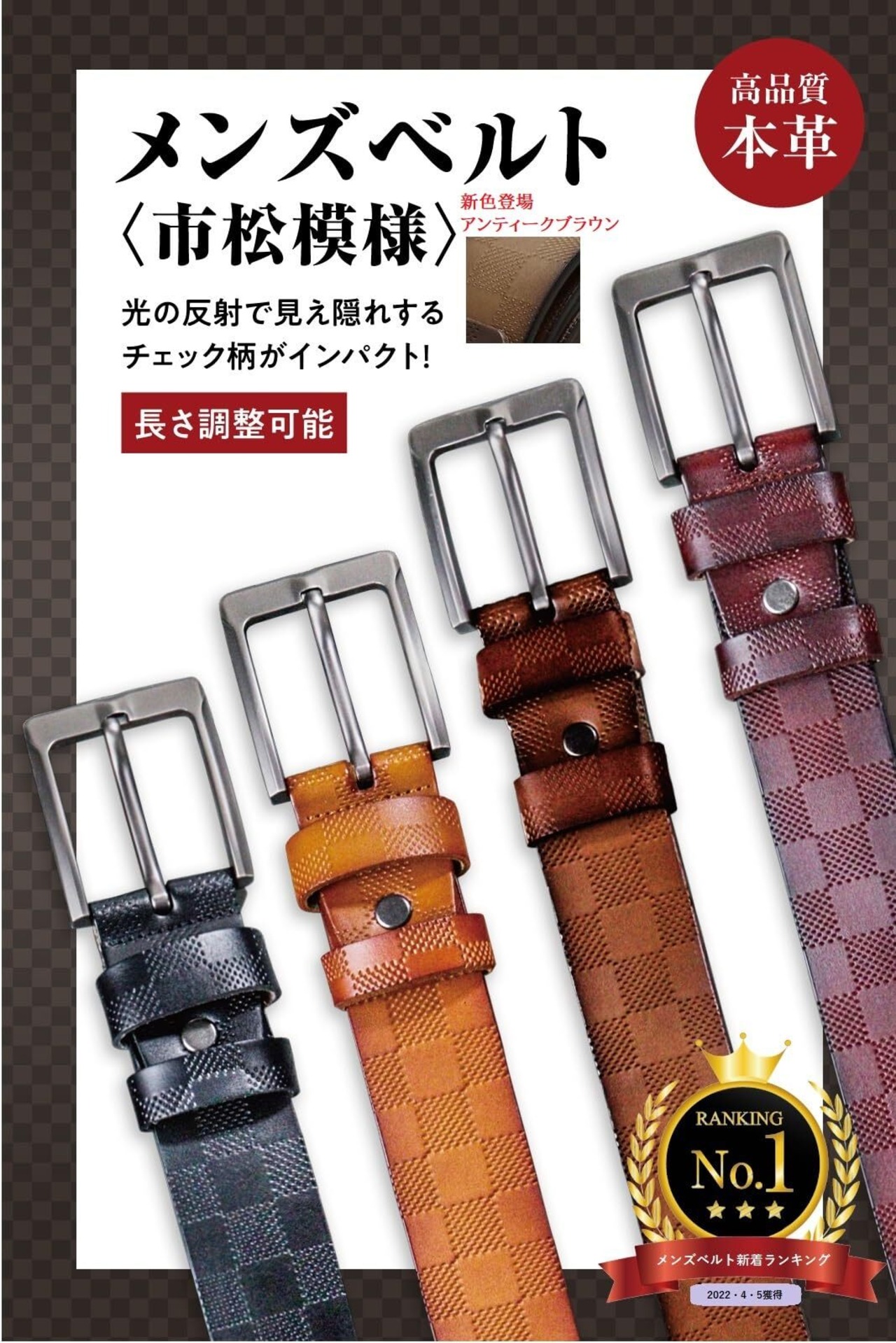【特徴】市松模様(チェック柄)の入ったオシャレなベルトです。本革ならではの使い込むごとになじんでいく贅沢な質感。頑丈、丈夫で長持ち。しっかりしてるが硬すぎず装着しやすく、外しやすいなめらかな質感。