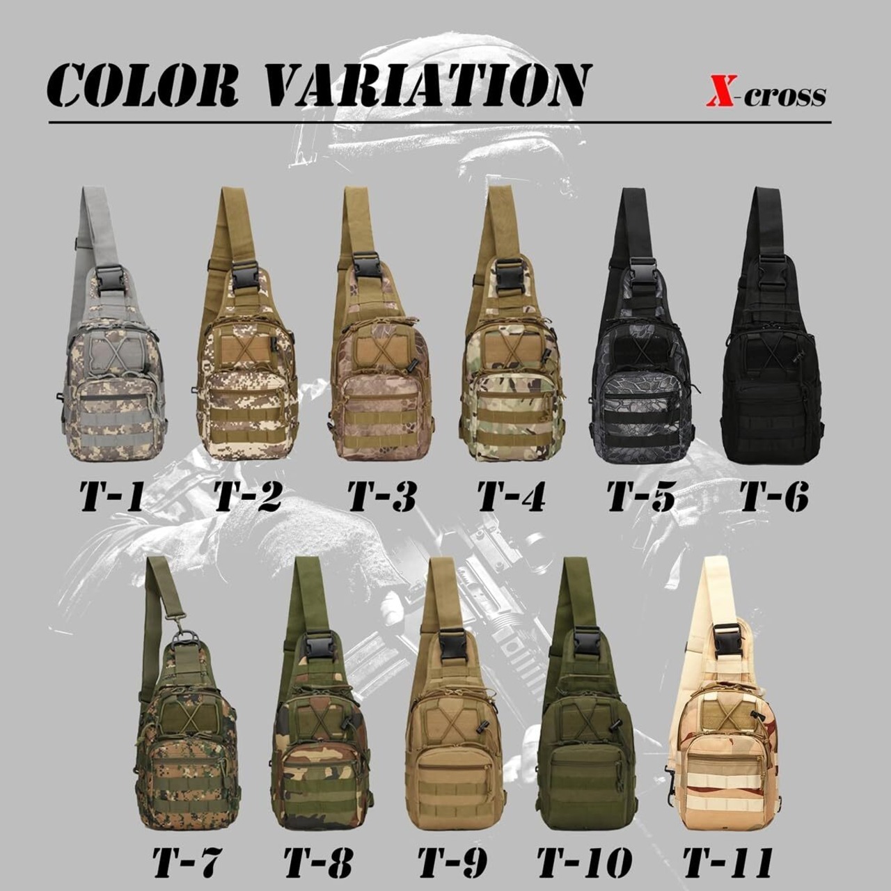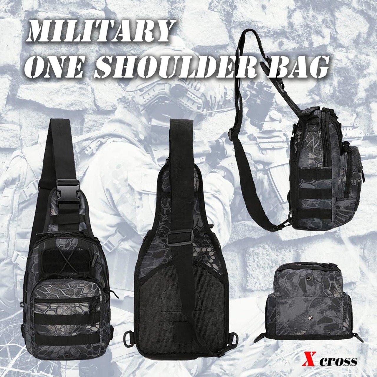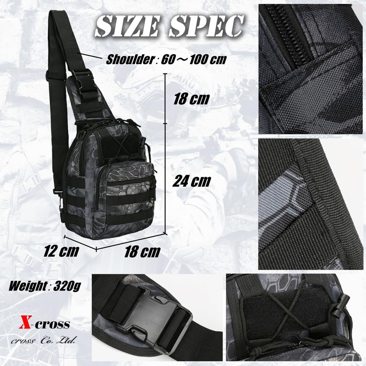 [X-cross] クロス ミリタリー ボディバッグ 大容量 3way ワンショルダー 軽量 多機能 アウトドア 斜めがけ 釣り