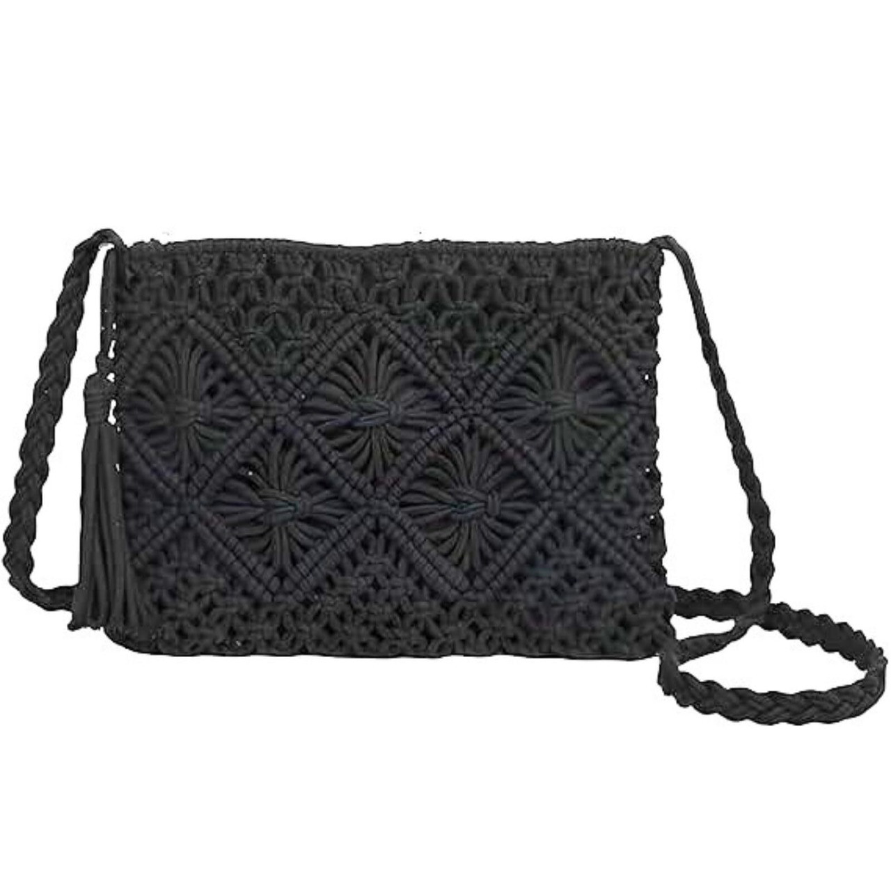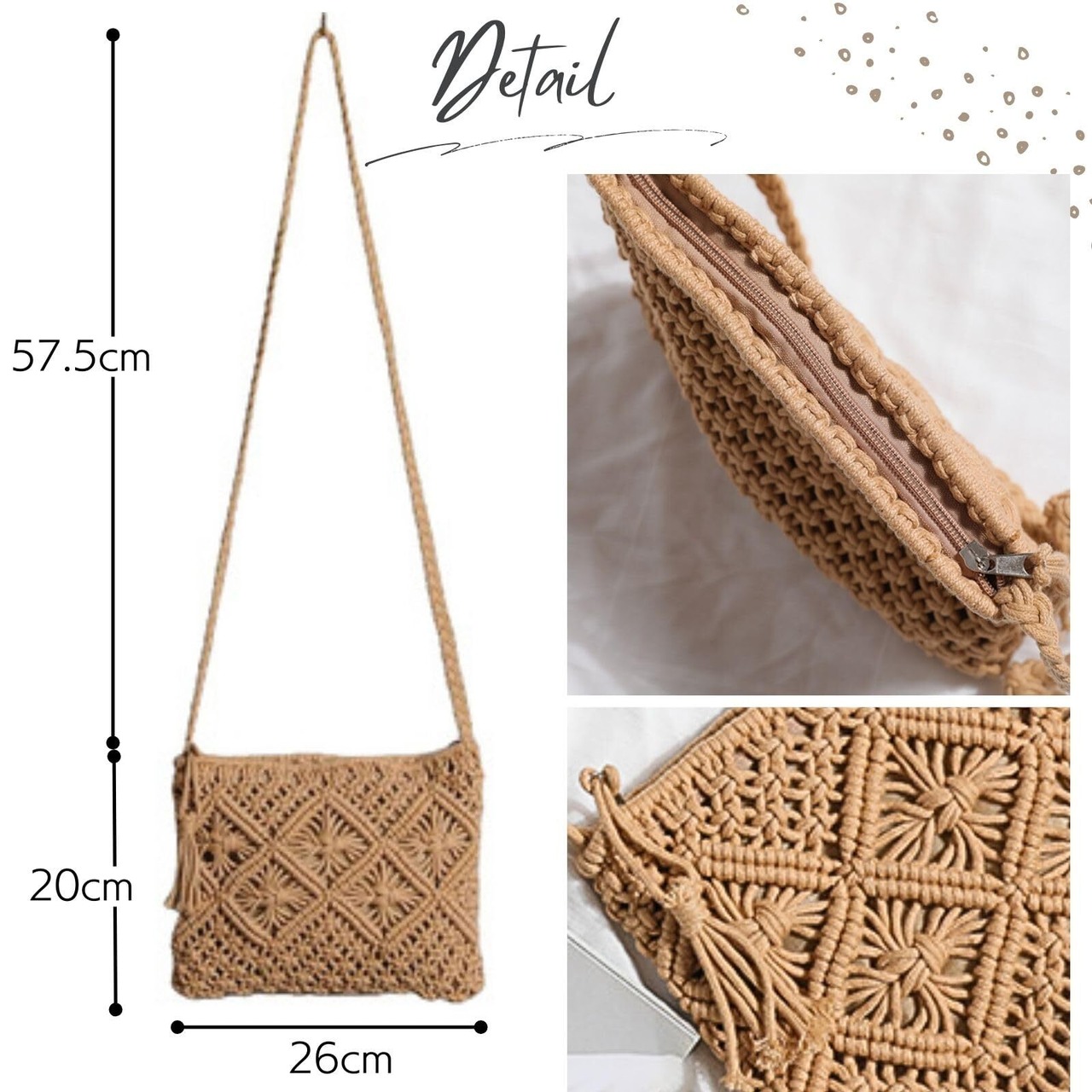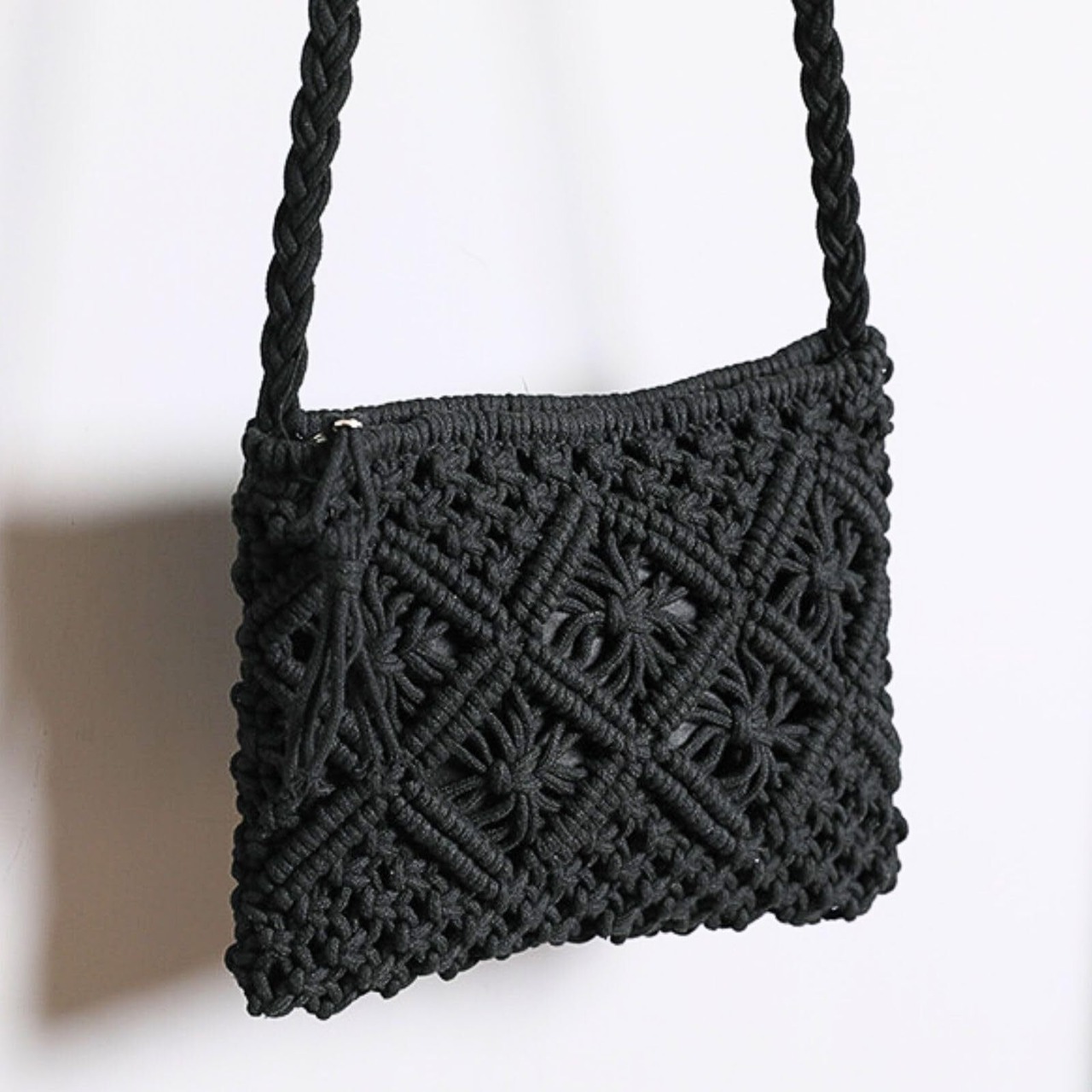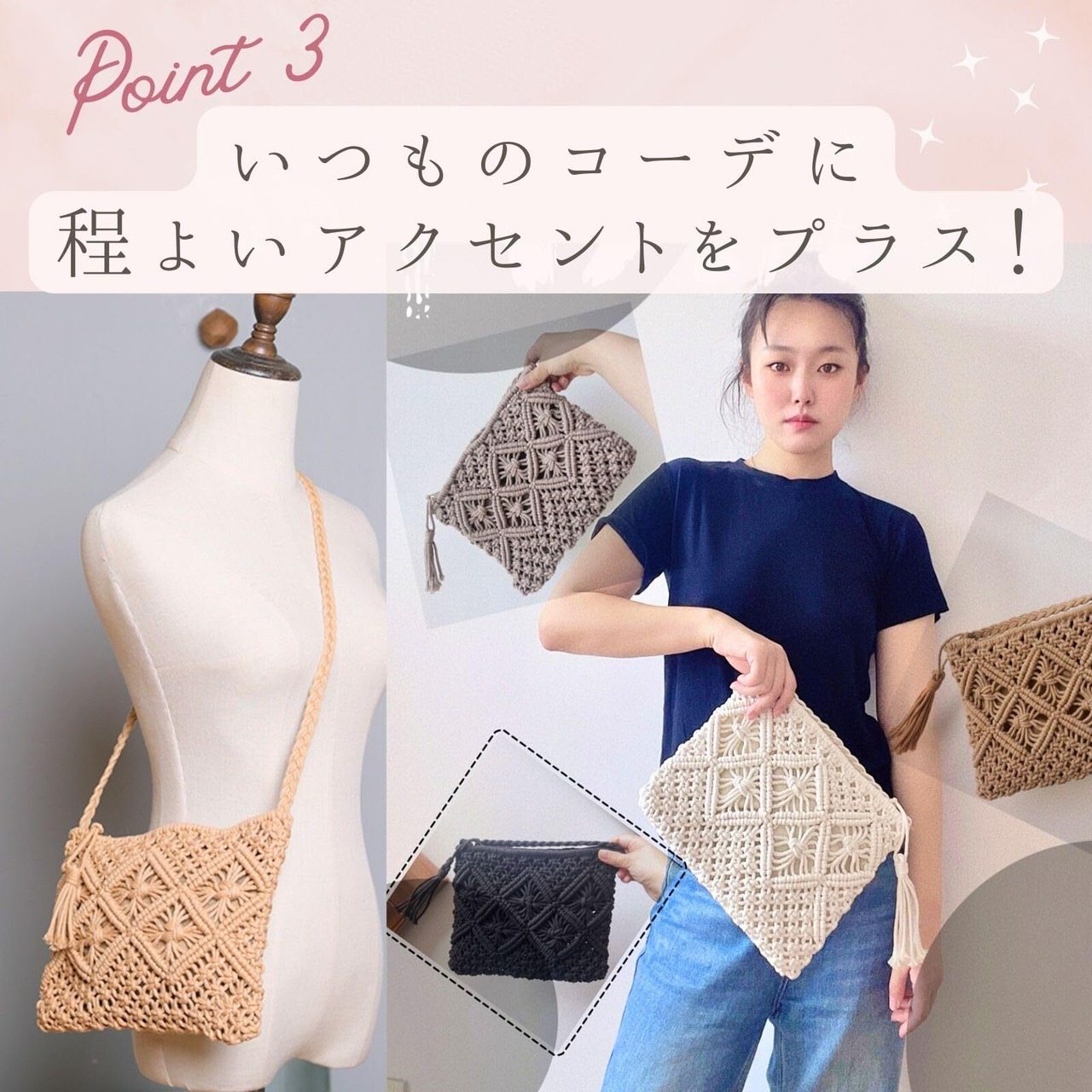 今話題のトレンドアイテム太紐でざっくり編みこんだマクラメ編みがおしゃれなショルダーバッグです。
