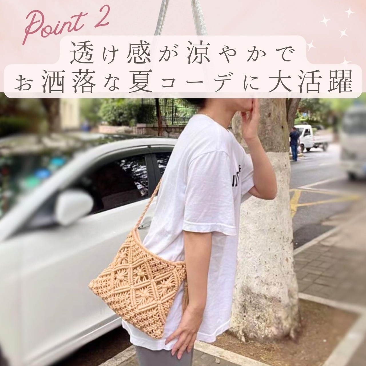 [ハルジオ] かごバッグ マクラメ ショルダー 編みバッグ 浴衣 和装 夏 ポシェット 小さめ ストロー ショルダー カゴ 夏用 網 麻 ジュート