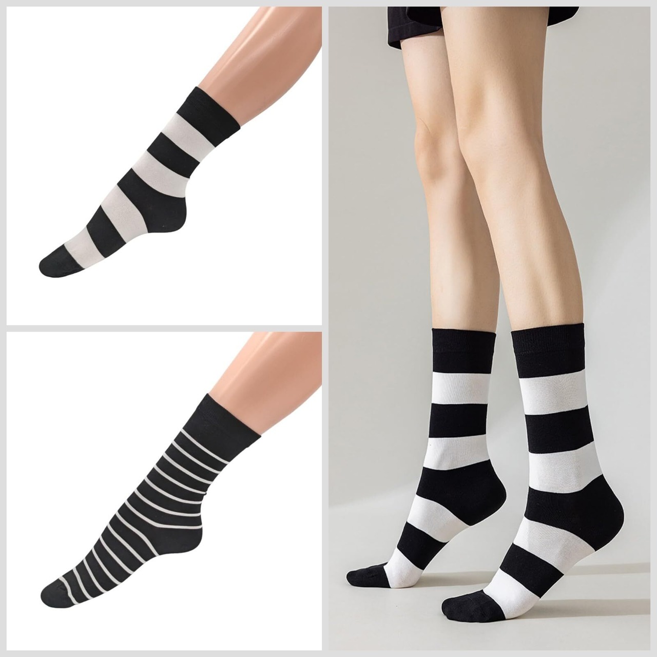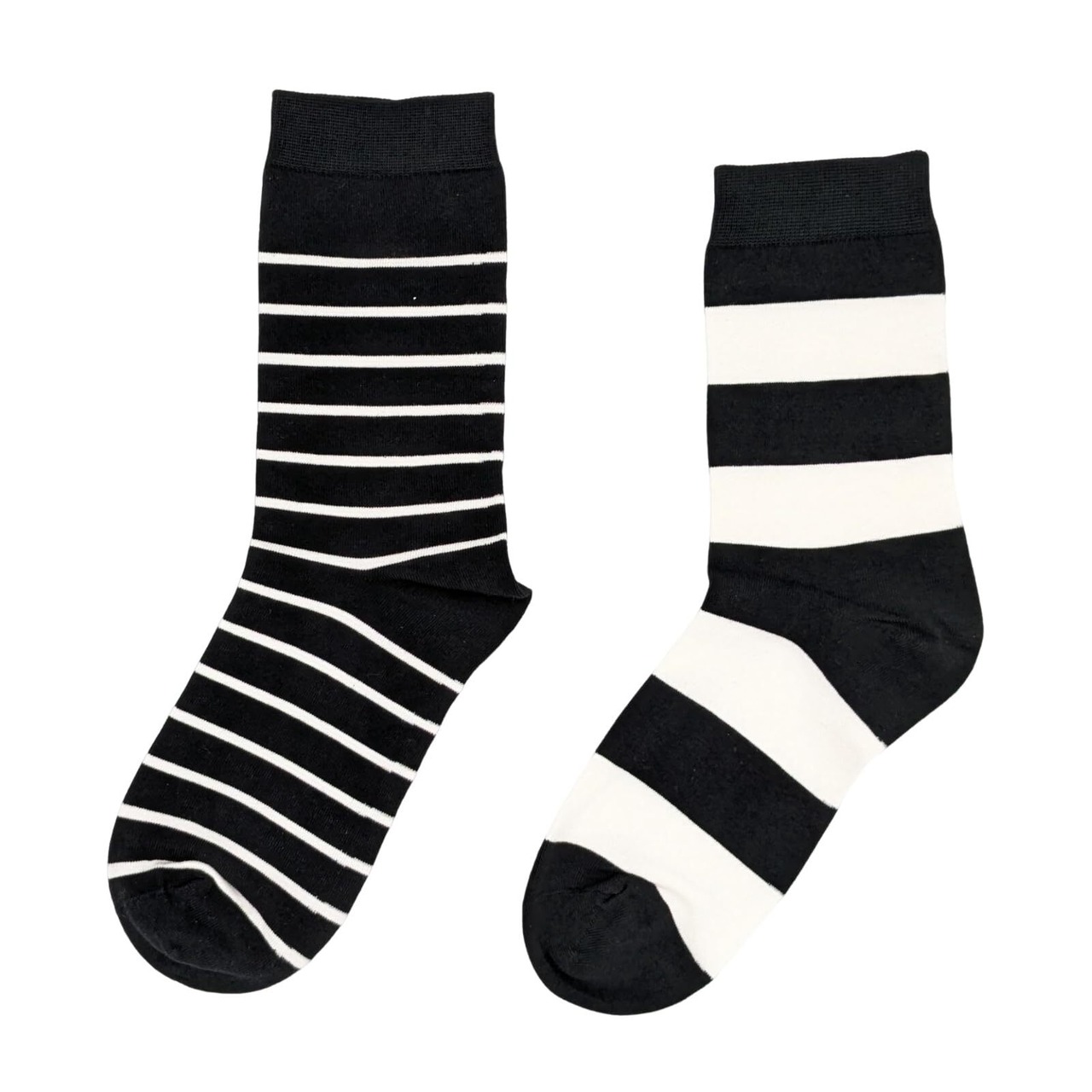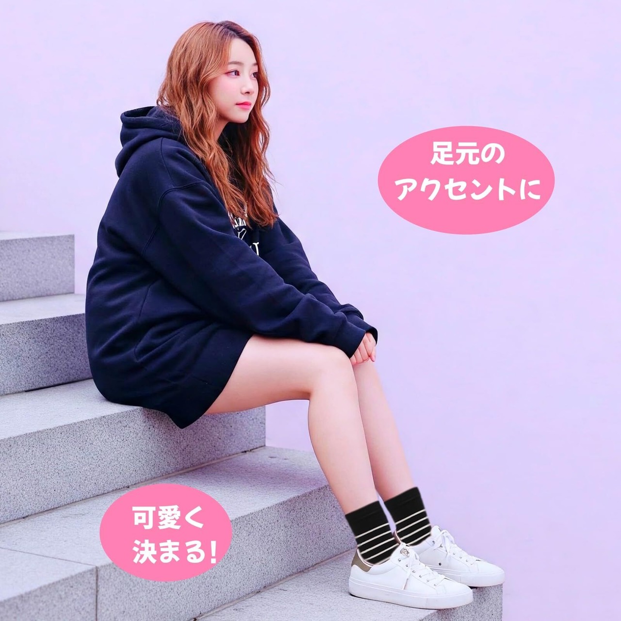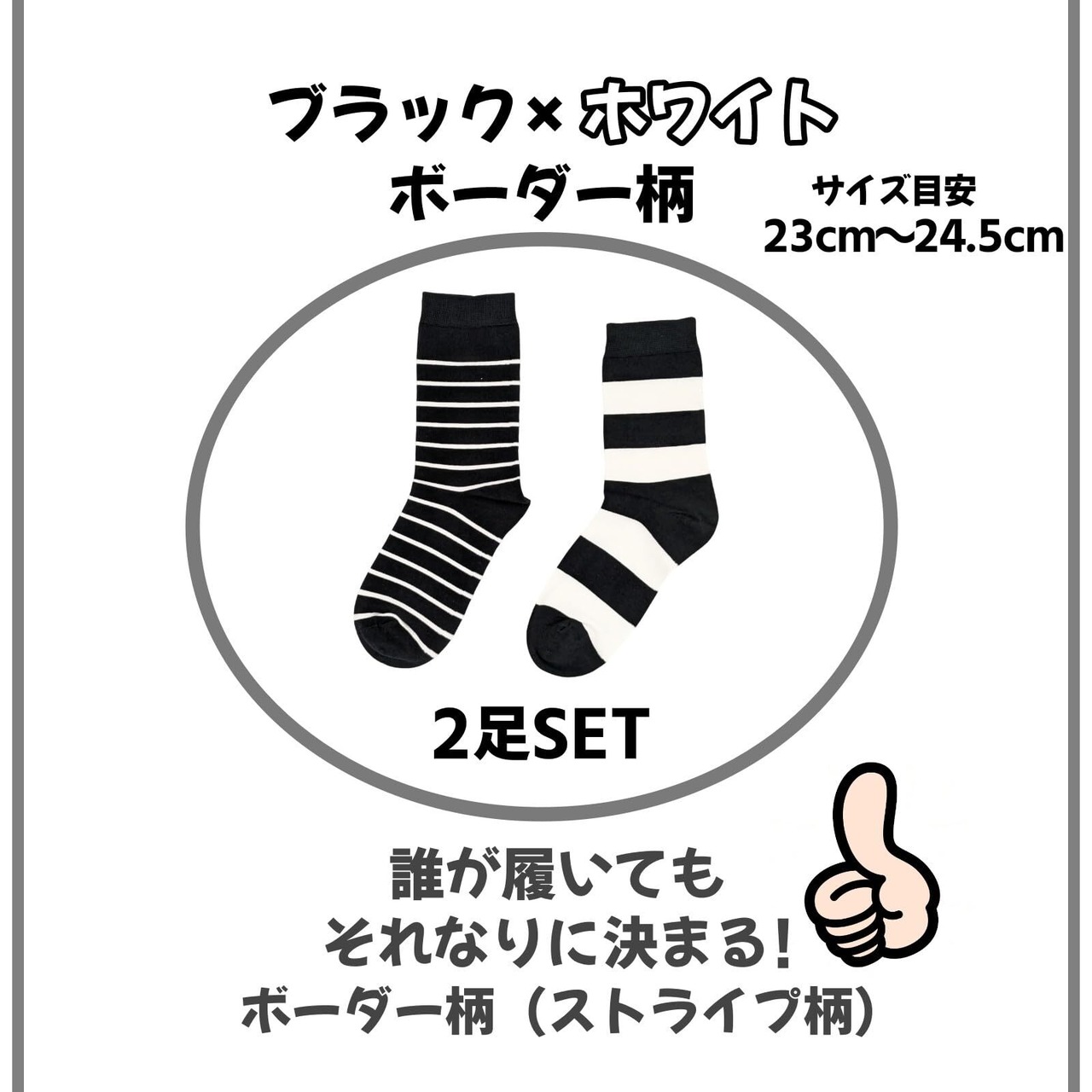[APOSITV] レディース 靴下 ストライプ ボーダー ブラック クルー丈 ソックス 2足セット