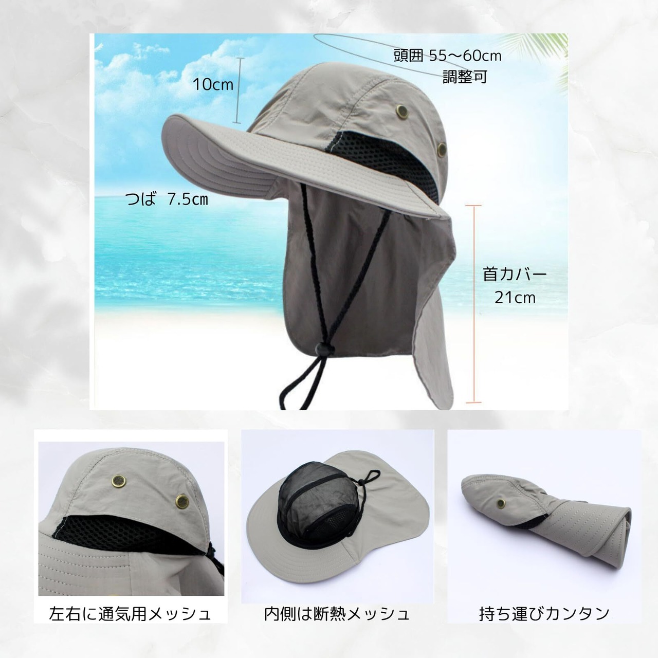 ・顔と首筋を守る広いつばとロングケープが紫外線対策に最適。夏の日差しでも安心して屋外活動が楽しめる、機能性に優れた紫外線対策のサファリハット。 ・後頭部のゴムでぴったりサイズに調整可能。あご紐付きで風の強い日でもしっかりフィット。サイドにメッシュ素材を使用し、軽くて通気性がいいので毎日の作業やお散歩に手放せません。 ・折りたたんでカバンに簡単収納。軽量で持ち運びしやすく、旅行や遠出に便利なUV対策アイテム。気軽に使える日除けアイテムです。 ・ガーデニングや農作業、旅行、登山、ウォーキングなどあらゆるアウトドア活動に活躍。日差しの強い日でもネックカバーで首回りまでしっかりとガードでき、熱中症対策にも最適です。 ・サイズ:頭位55~60cm つば7.5cm ネックカバー21cm