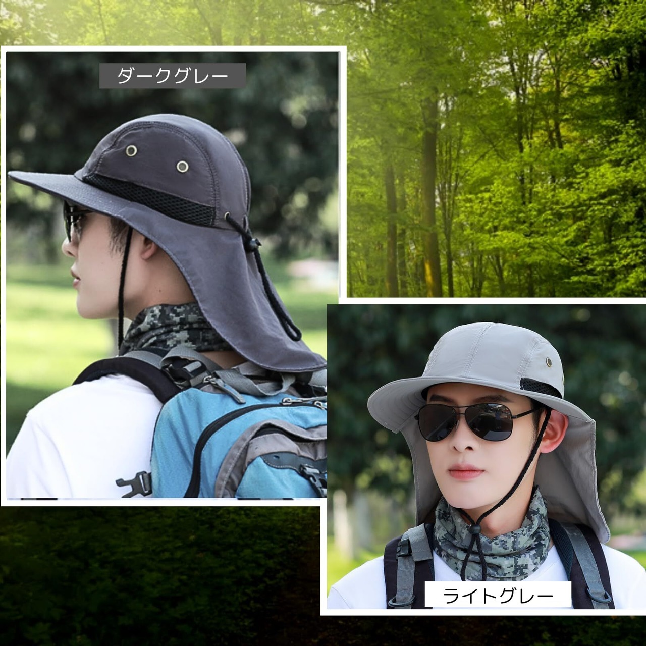 顔と首筋を守る広いつばとロングケープが紫外線対策に最適。夏の日差しでも安心して屋外活動が楽しめる、機能性に優れた紫外線対策のサファリハット。