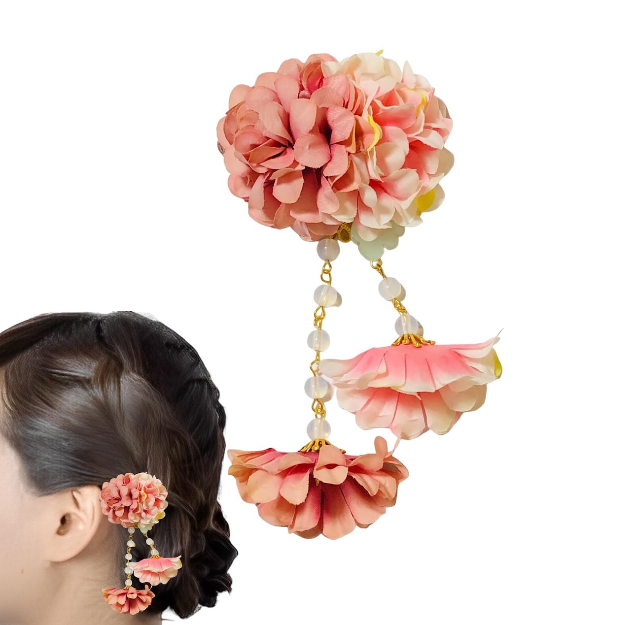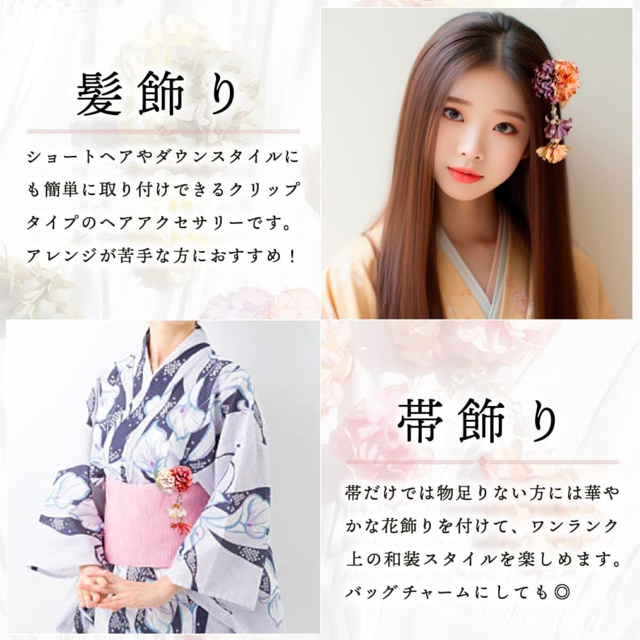 【ヘアクリップタイプ】和装のお団子ヘア、まとめ髪に。また、クリップタイプですので、ショートヘアの方にもご使用いただけます。簡単に髪に留めるだけで、和装スタイルにワンポイントのお花が華やかさを添えます。