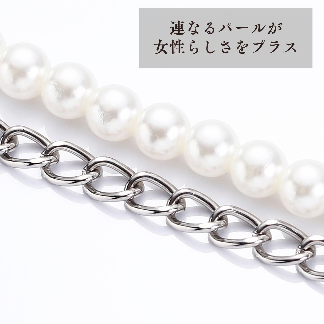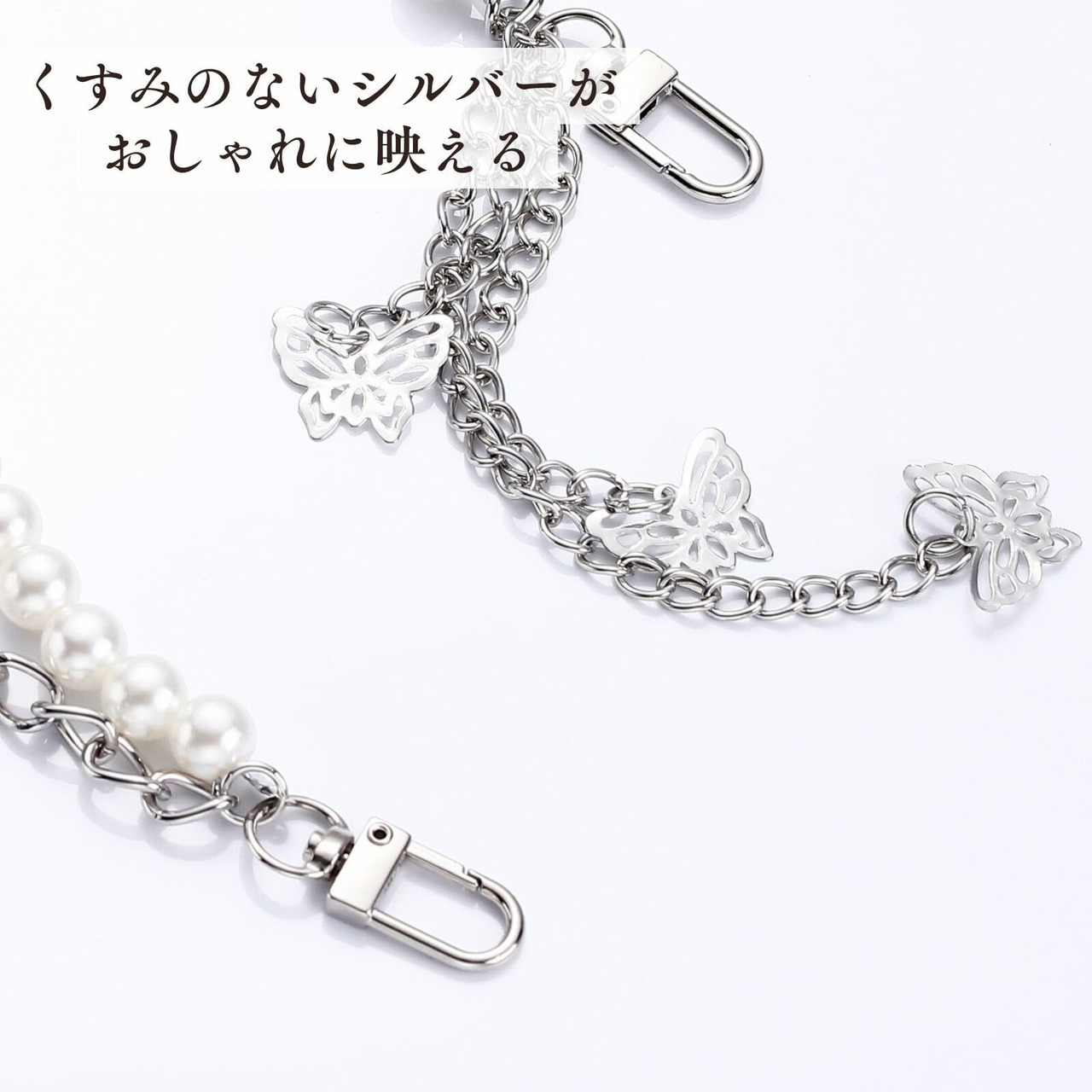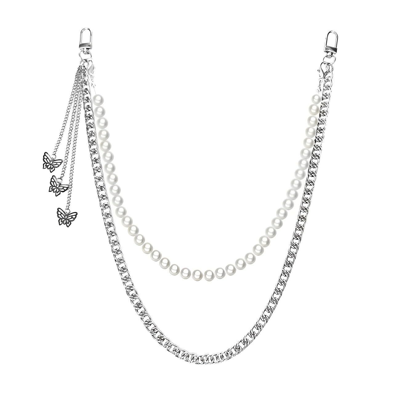 [ハルジオ] ウォレットチェーン アクセント ベルトレディース パール ズボンチェーン パンツチェーン 財布 チェーン シルバー キーチェーン ズボンにつけるチェーン 可愛い オシャレ