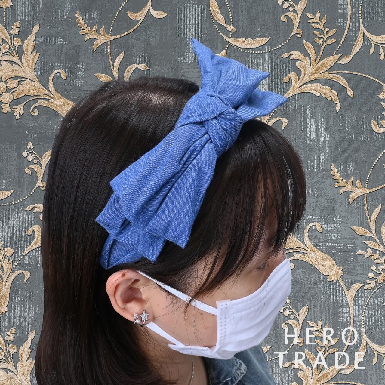 ヒロワールドトレード リボン カチューシャ デニムカラー ヘアバンド ヘッドバンド 子ども 大人 (ライトブルー)