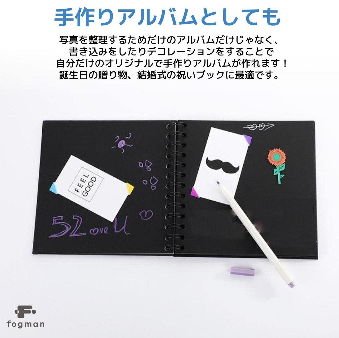 fogman アルバム スクラップブック 写真 手作り デコ 黒台紙 子供 赤ちゃん 20ページ (黒)