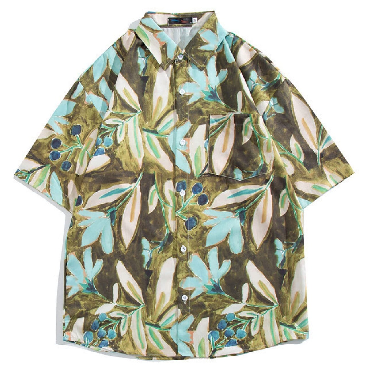 おしゃれなアートのカジュアルな開襟メンズシャツです。さらっとした薄手の生地で暑い夏の日を快適に過ごせるハワイアンなアロハシャツです。最近の夏は長いので、長い期間活躍します。