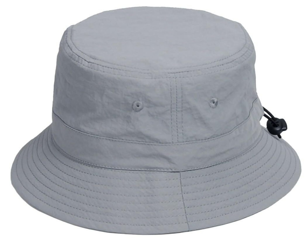 シンプルでどんなスタイルにも合わせやすいポリエステルまたはナイロン素材(製造ロットによって異なります)のバケットハット。