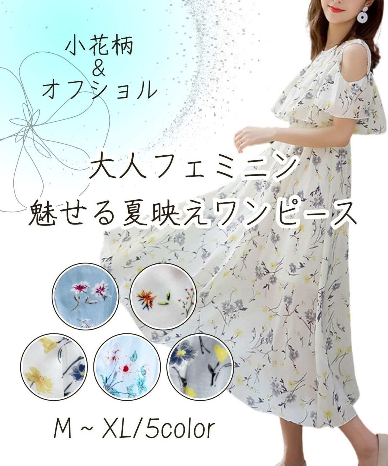 【小花柄が映える可憐なデザイン】 繊細な小花柄プリントが清楚で女性らしい印象を演出。軽やかで夏らしく、着映えするワンピースはビーチやカフェデートにもぴったりな一枚です。
