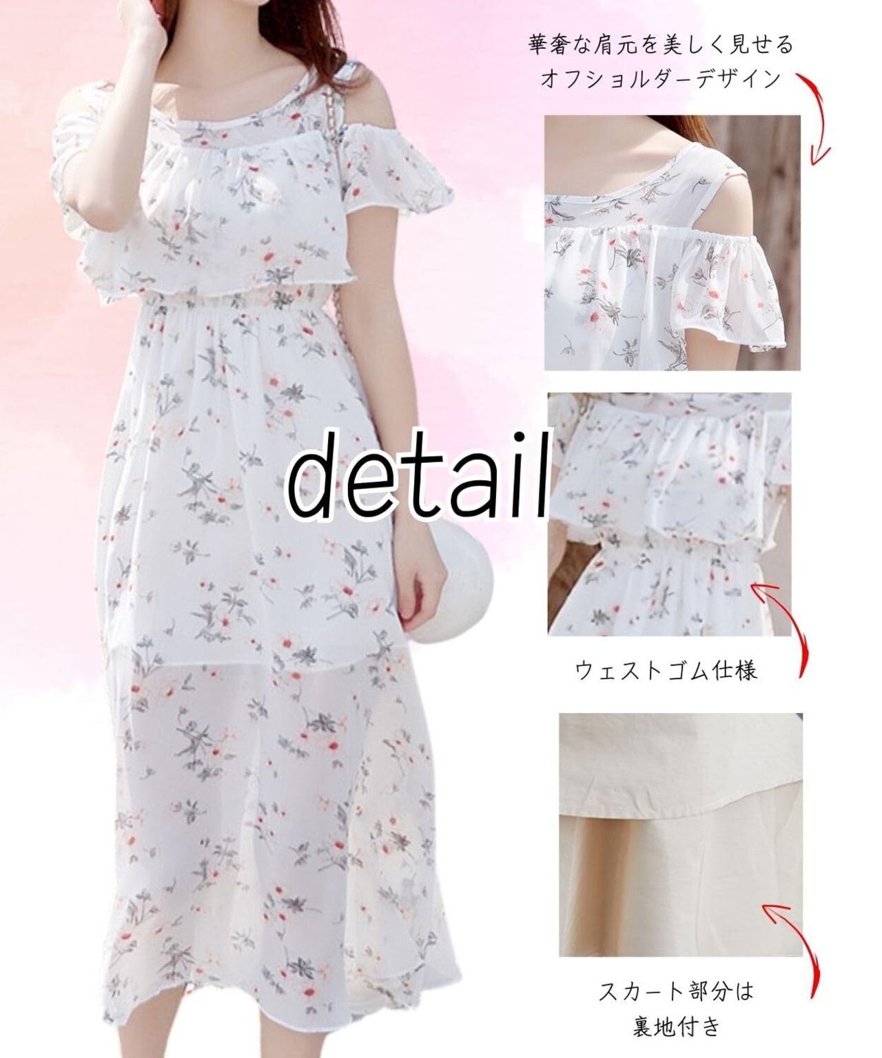 [Four leaf] 花柄ワンピース リゾートワンピース レディース 夏 可愛い 肩出し ワンピース きれいめ ロング カジュアル 大きいサイズ 半袖 リゾート 夏服 aライン ミモレ丈 上品 サマー ドレス エレガント ゆったり 旅行