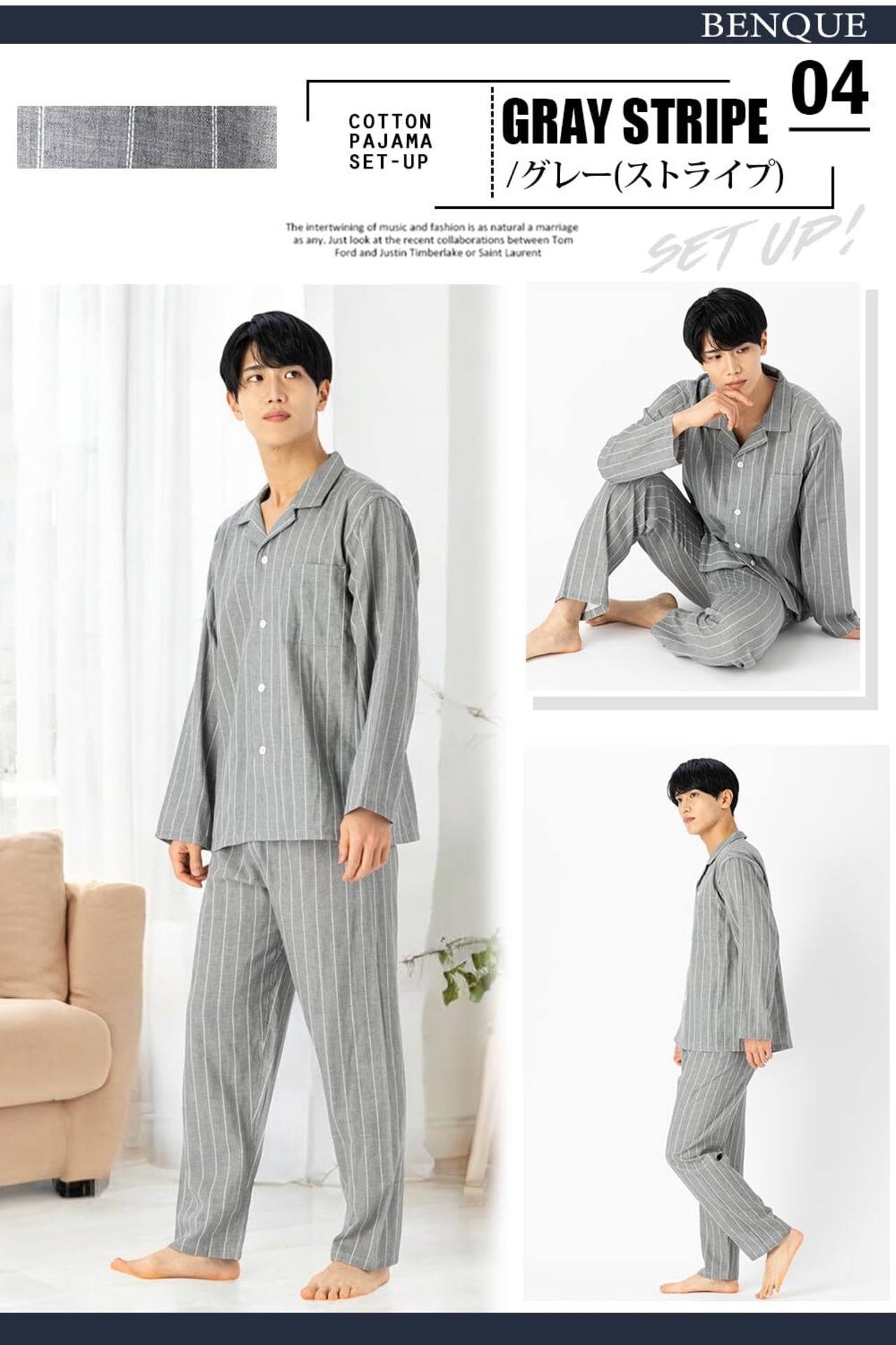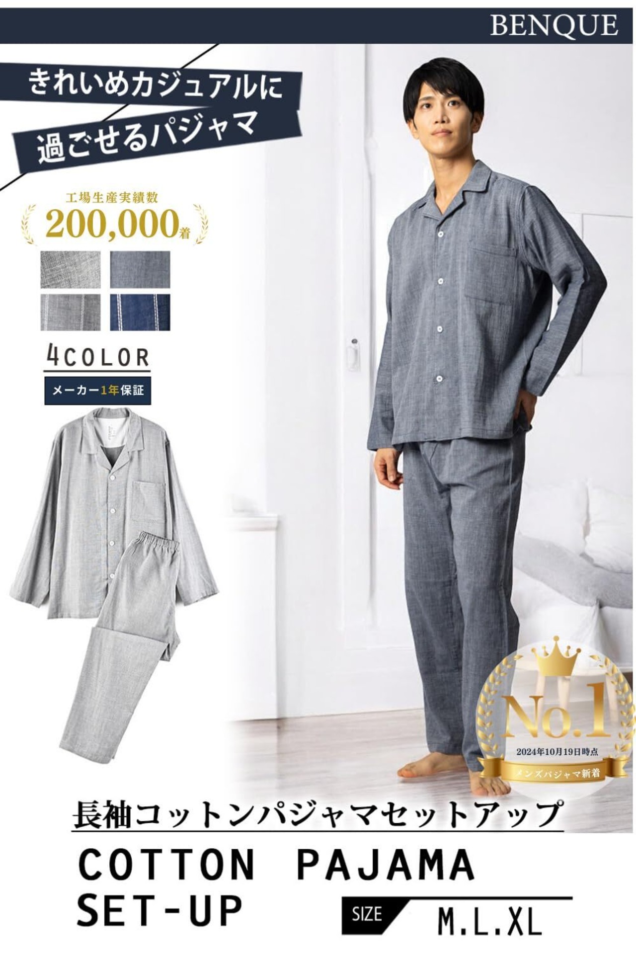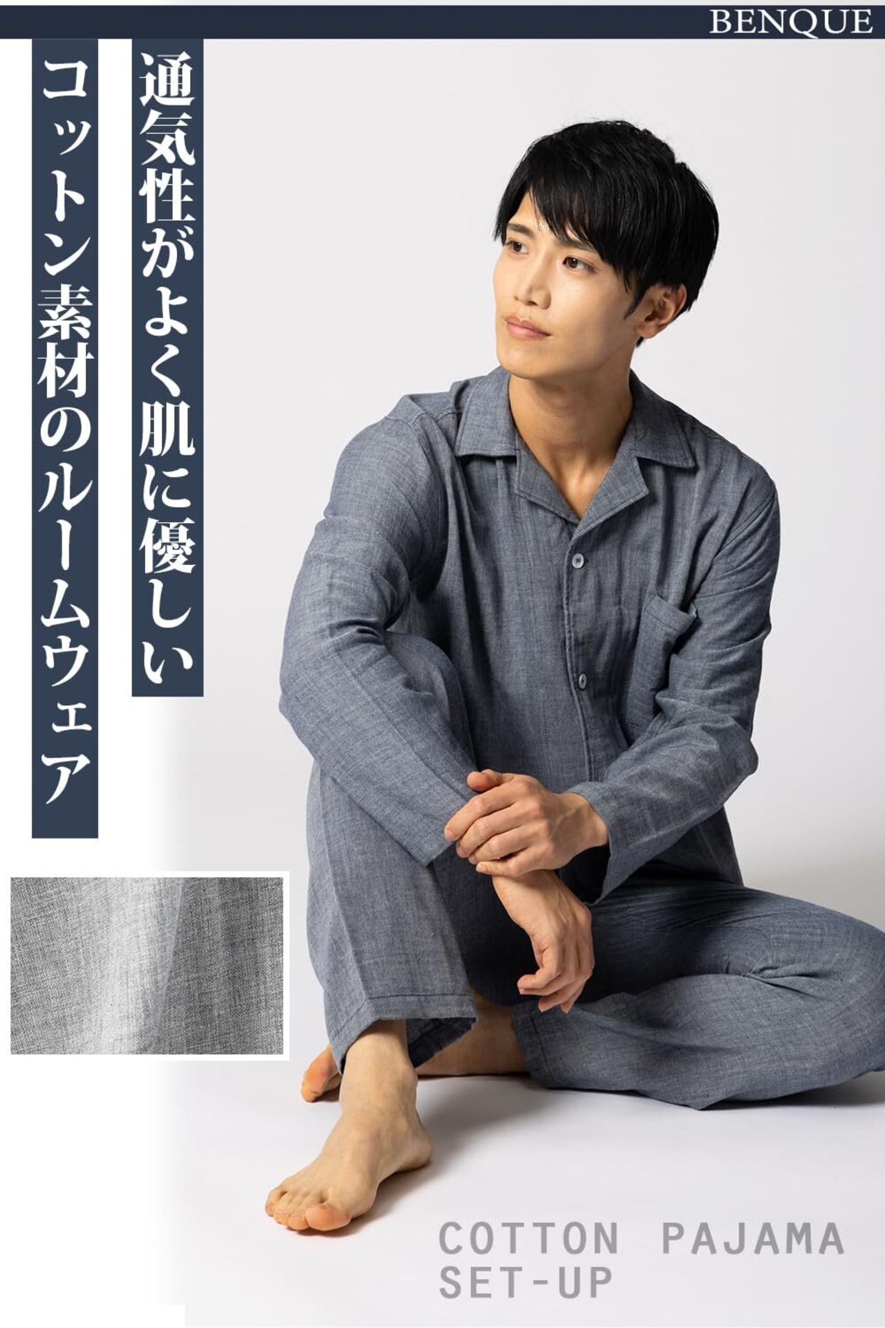 [ベンケ] 【肌触りが心地良い】パジャマ メンズ 上下セット 綿100% ガーゼ 薄手 長袖 長ズボン 春秋 寝巻き 部屋着 コットン [ホルムアルデヒド検査済] [シンプルxおしゃれ]