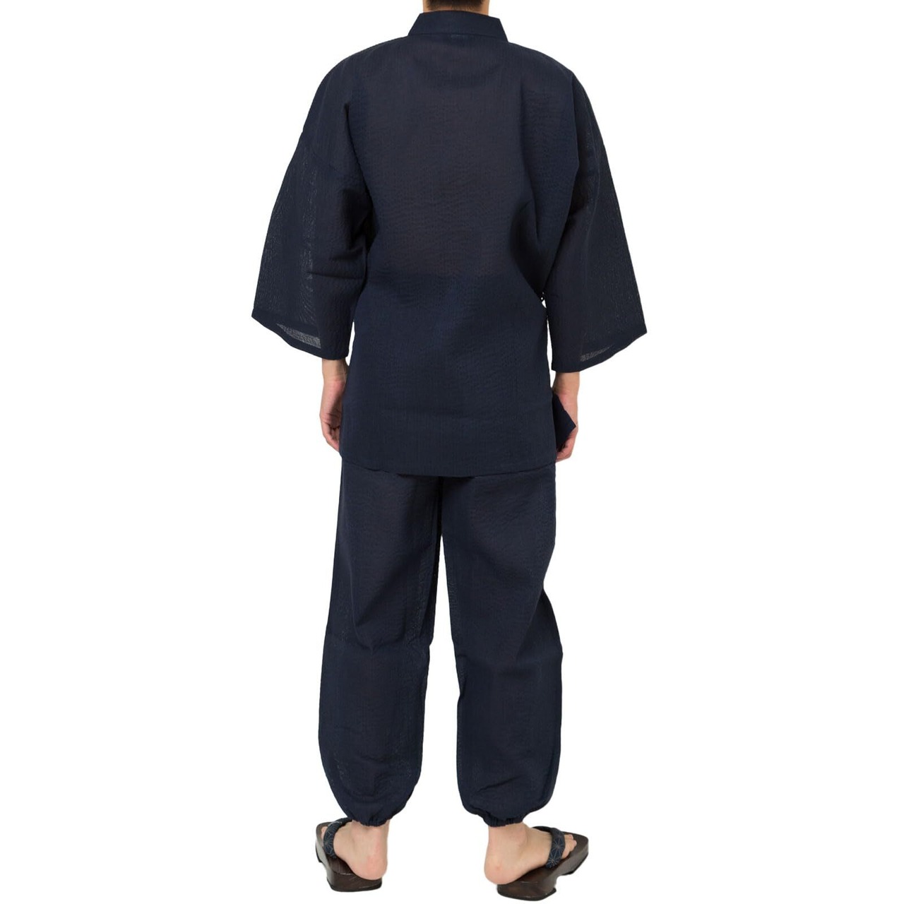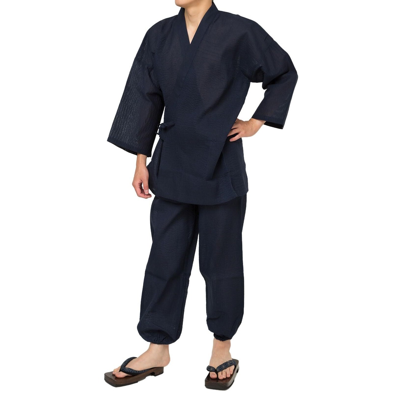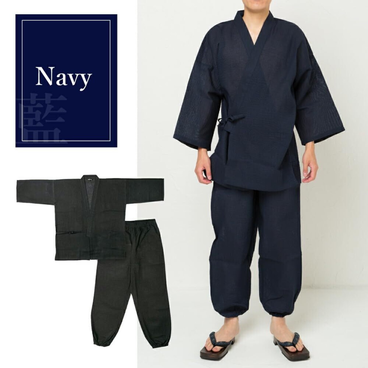 [Y's factory] 作務衣 甚平 メンズ しじら織 上下セット 無地 綿 100% 夏 ルームウェア 部屋着 パジャマ 和装 涼しい 着心地 ゴム裾 ズボン 夏 秋