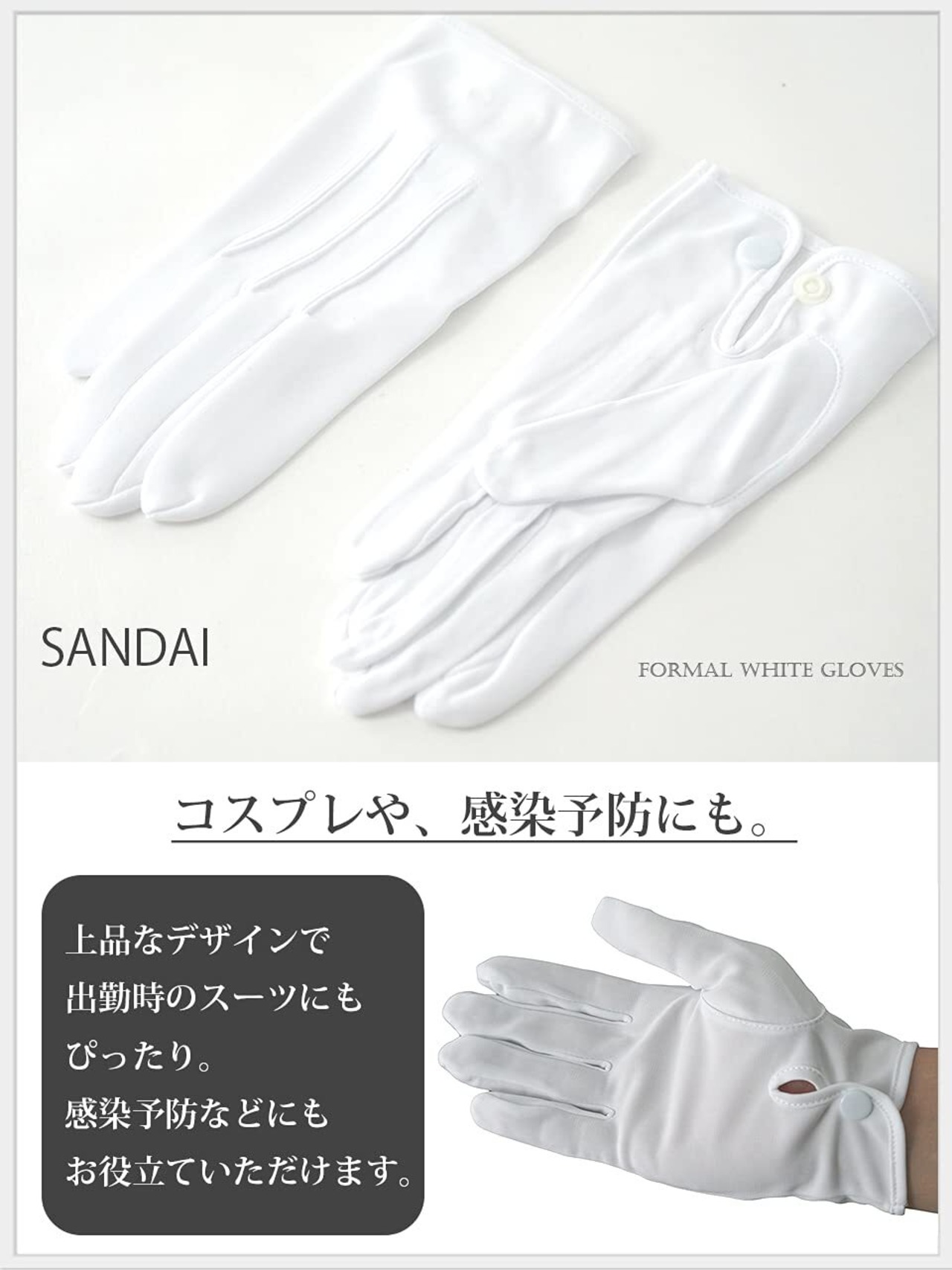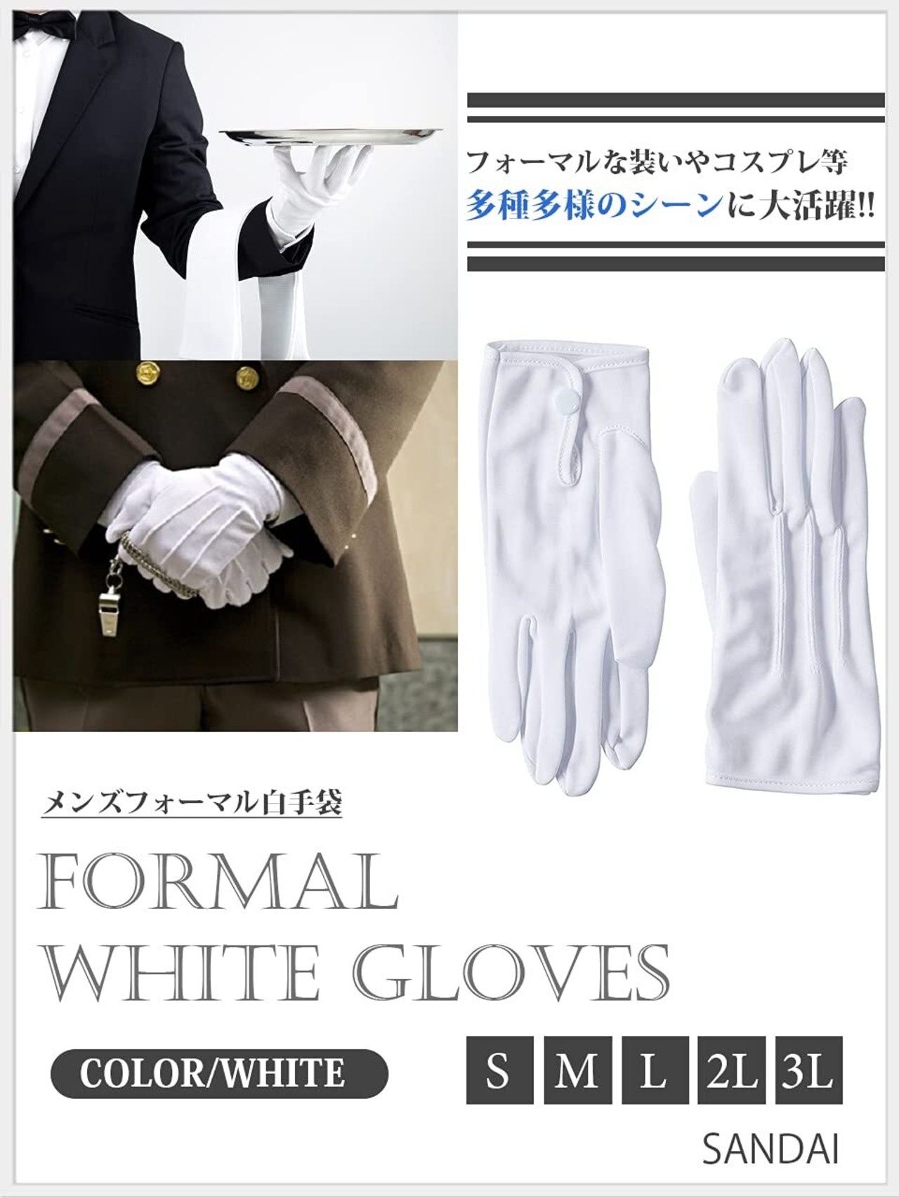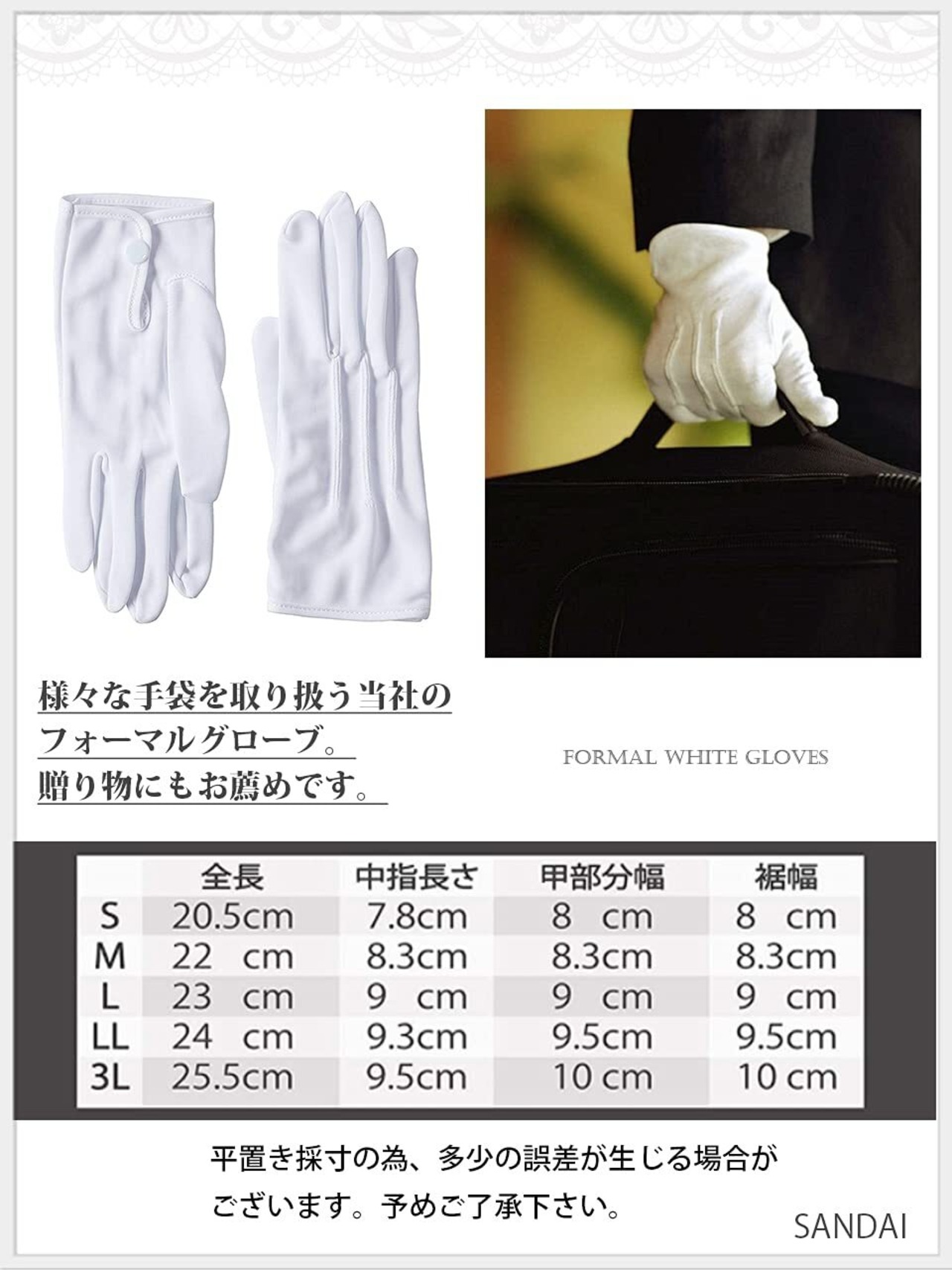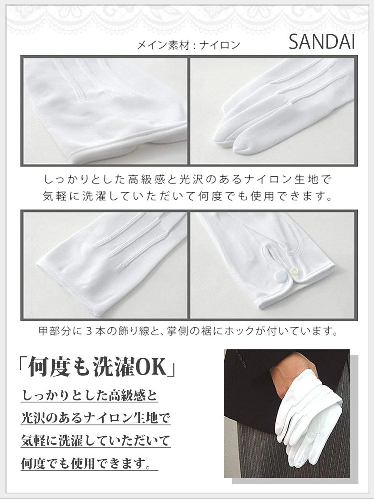[SANDAI] 礼装手袋 フォーマル ナイロン素材で摩擦が少ない ボタン付きで脱げにくい 白 ホック付東レ ナイロン グローブ 男女兼用 (S ~ 3L) 1・2・ 3・ 4・ 5・ 10双セット ブライダル 接客 記念行事