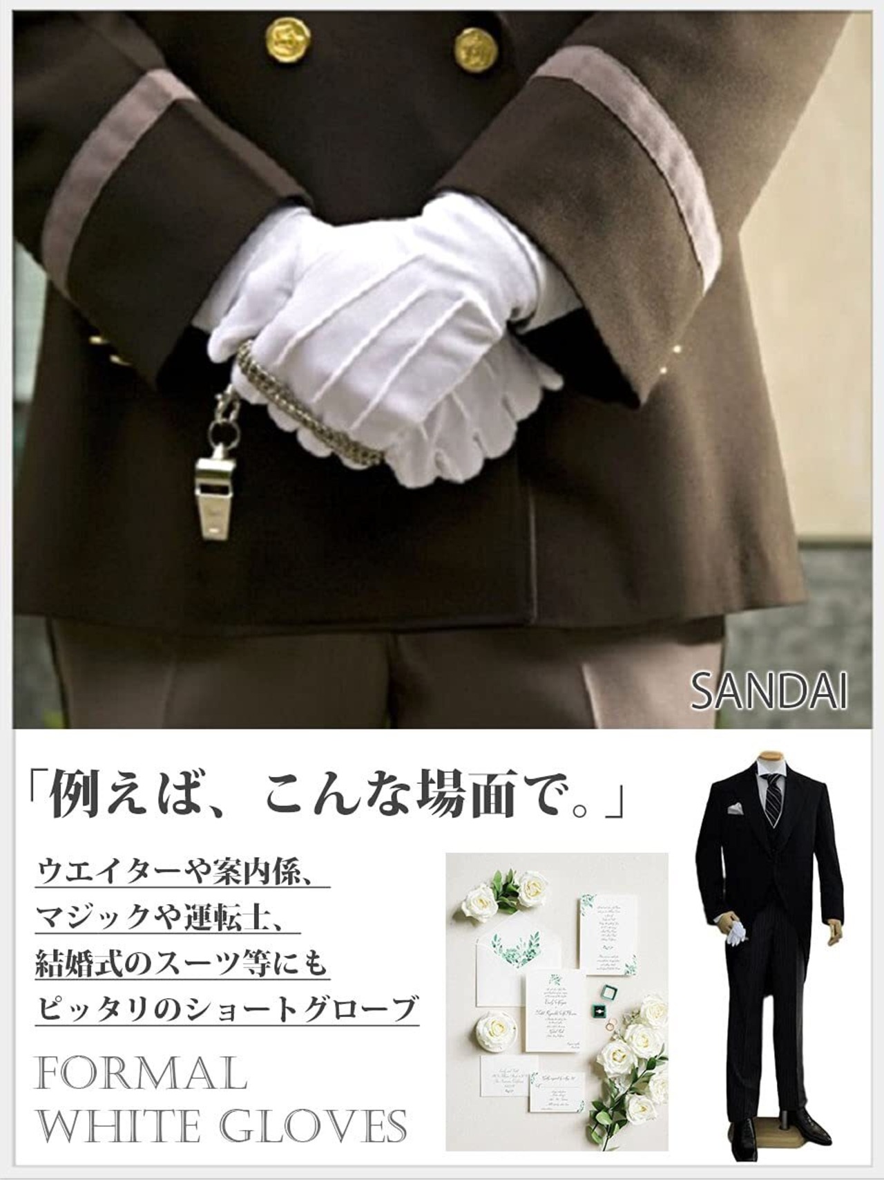ウエイターや案内係、マジックや運転士、結婚式のスーツ等にもピッタリのショートグローブ。1双あれば様々なシーンでお使い頂け重宝するアイテムになっております。