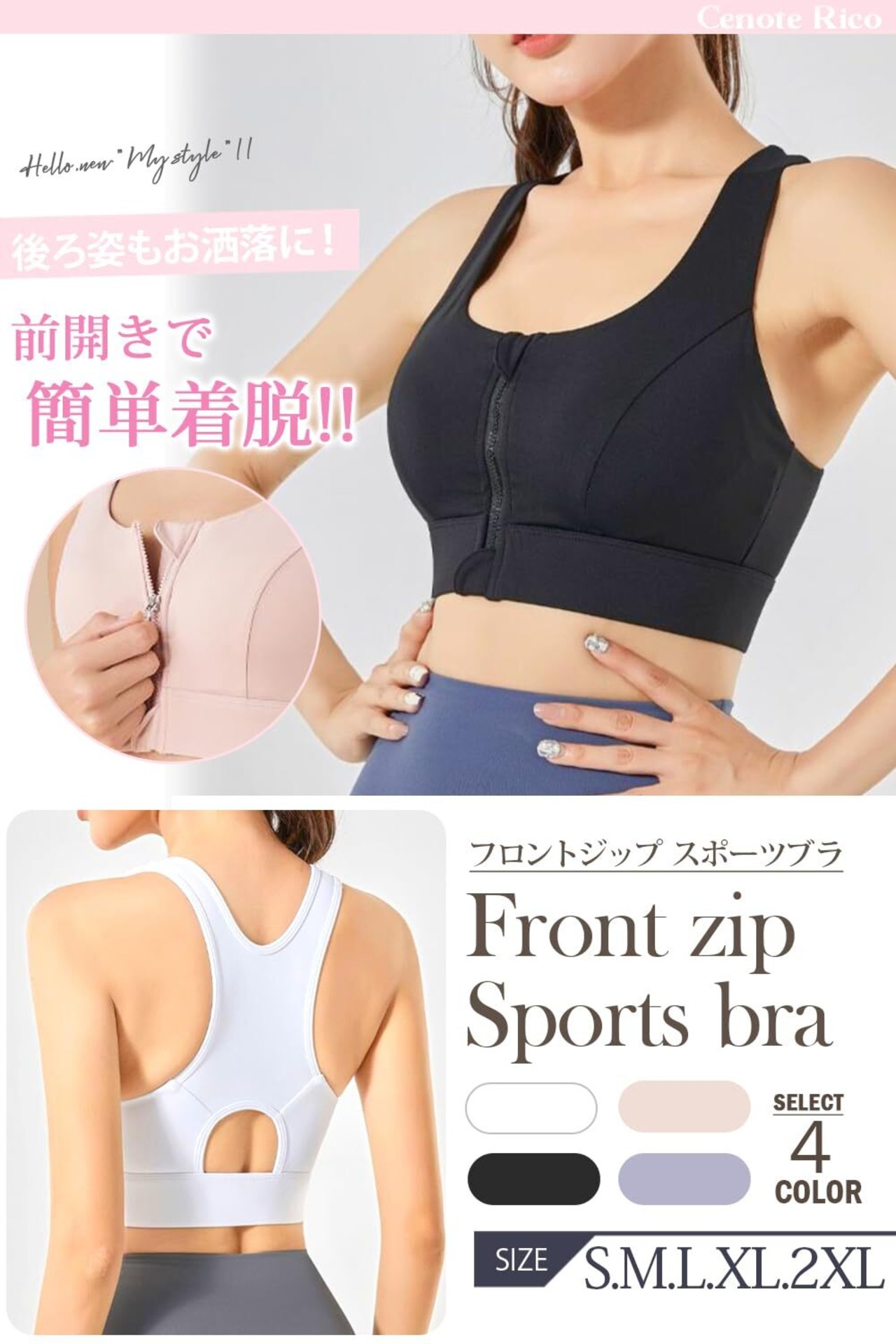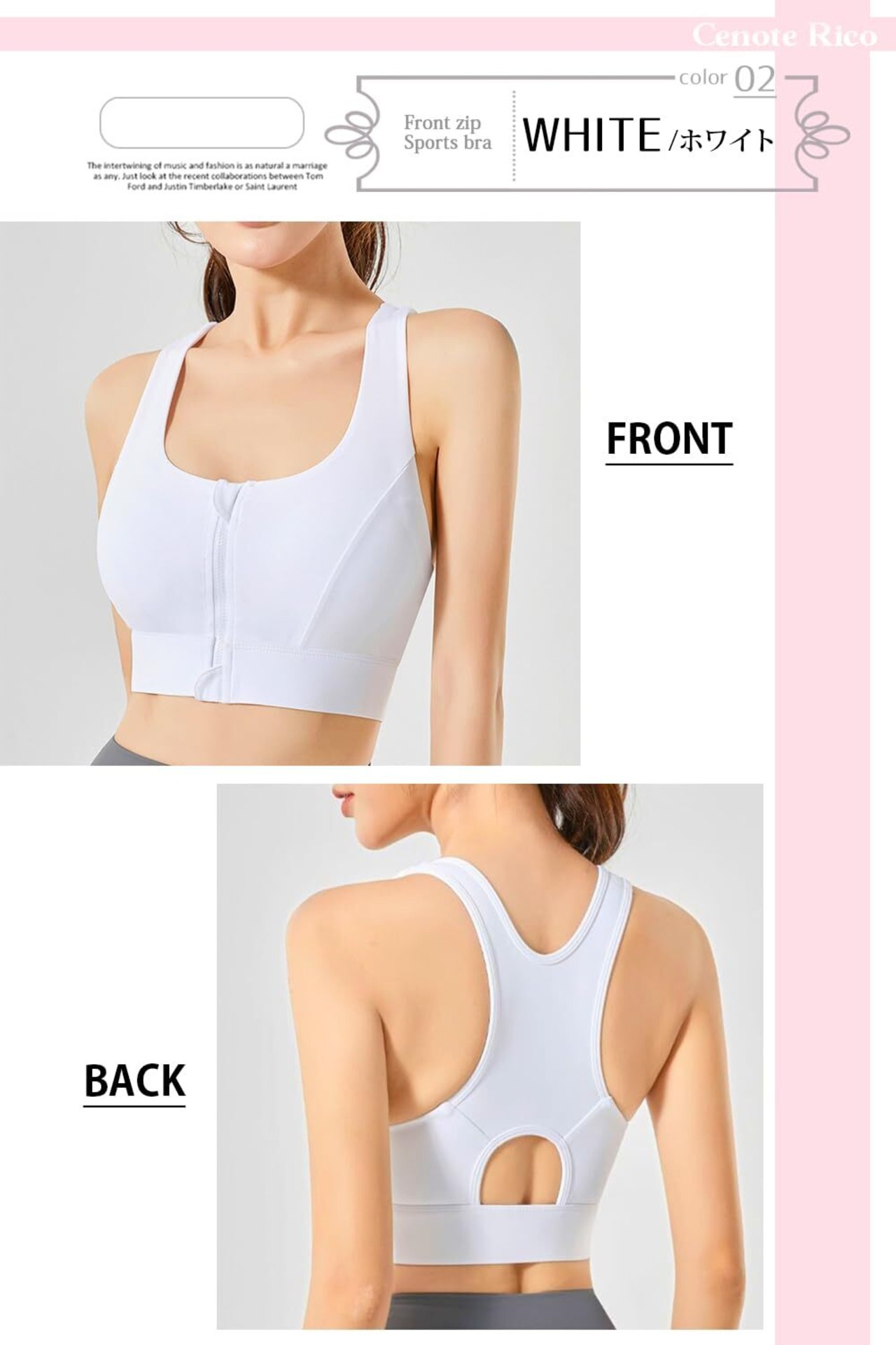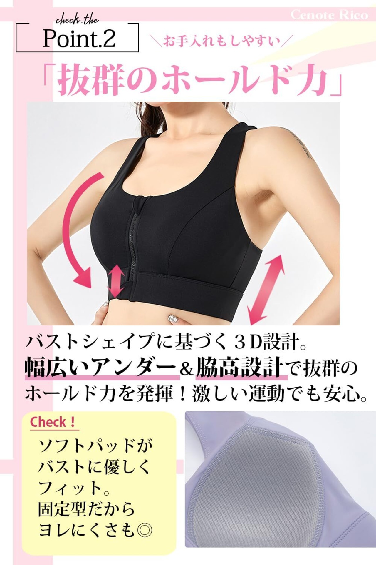 [Cenote Rico] 【前開きで着脱簡単】 スポーツブラ 揺れない ハイサポート パッド一体型 吸汗速乾 ランニング ジム スポブラ レディース 前開き