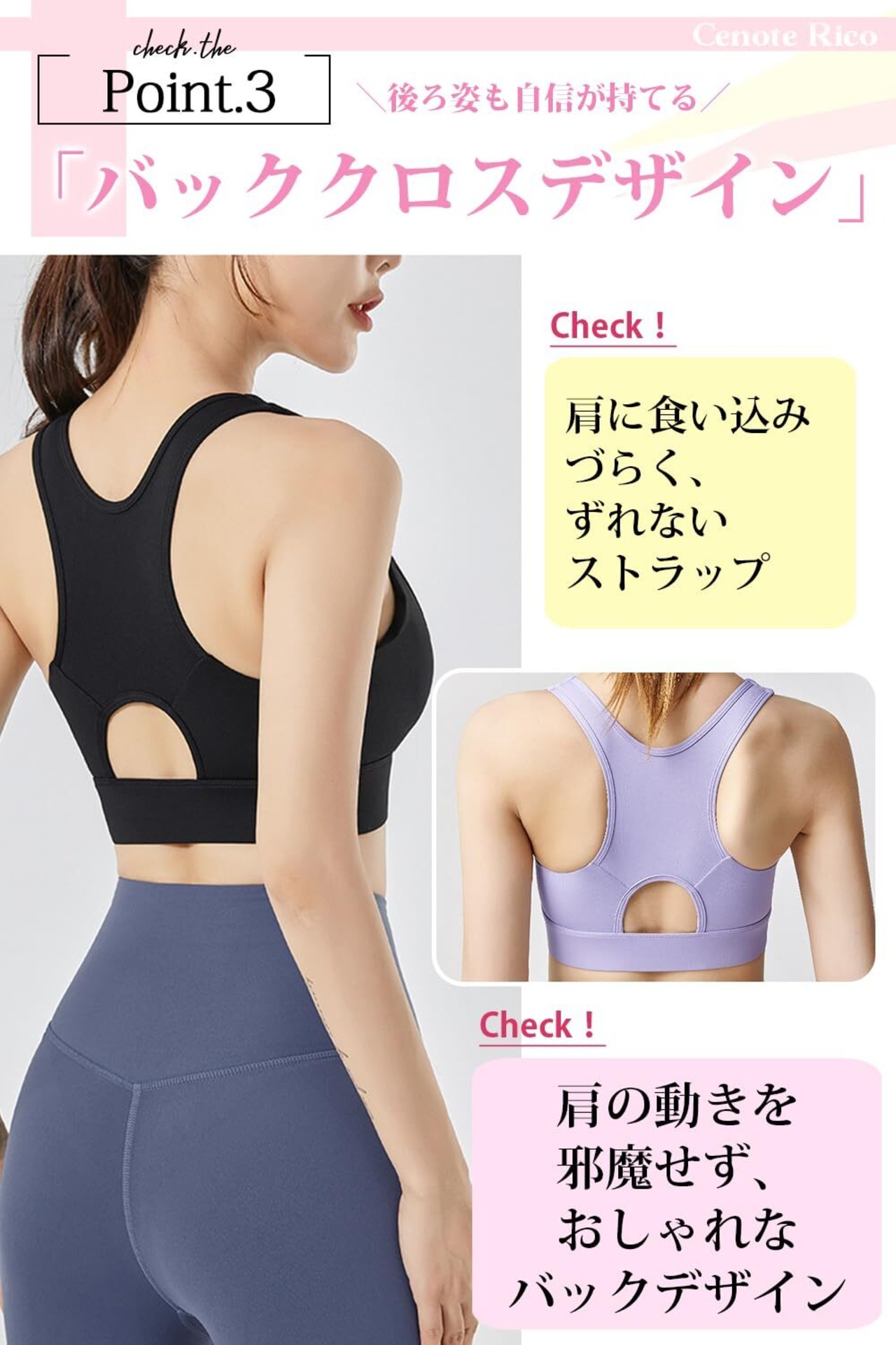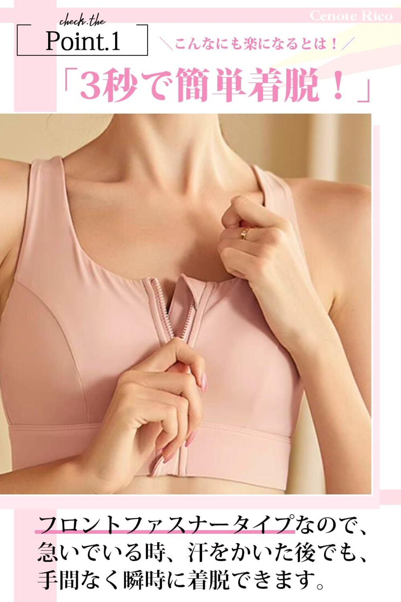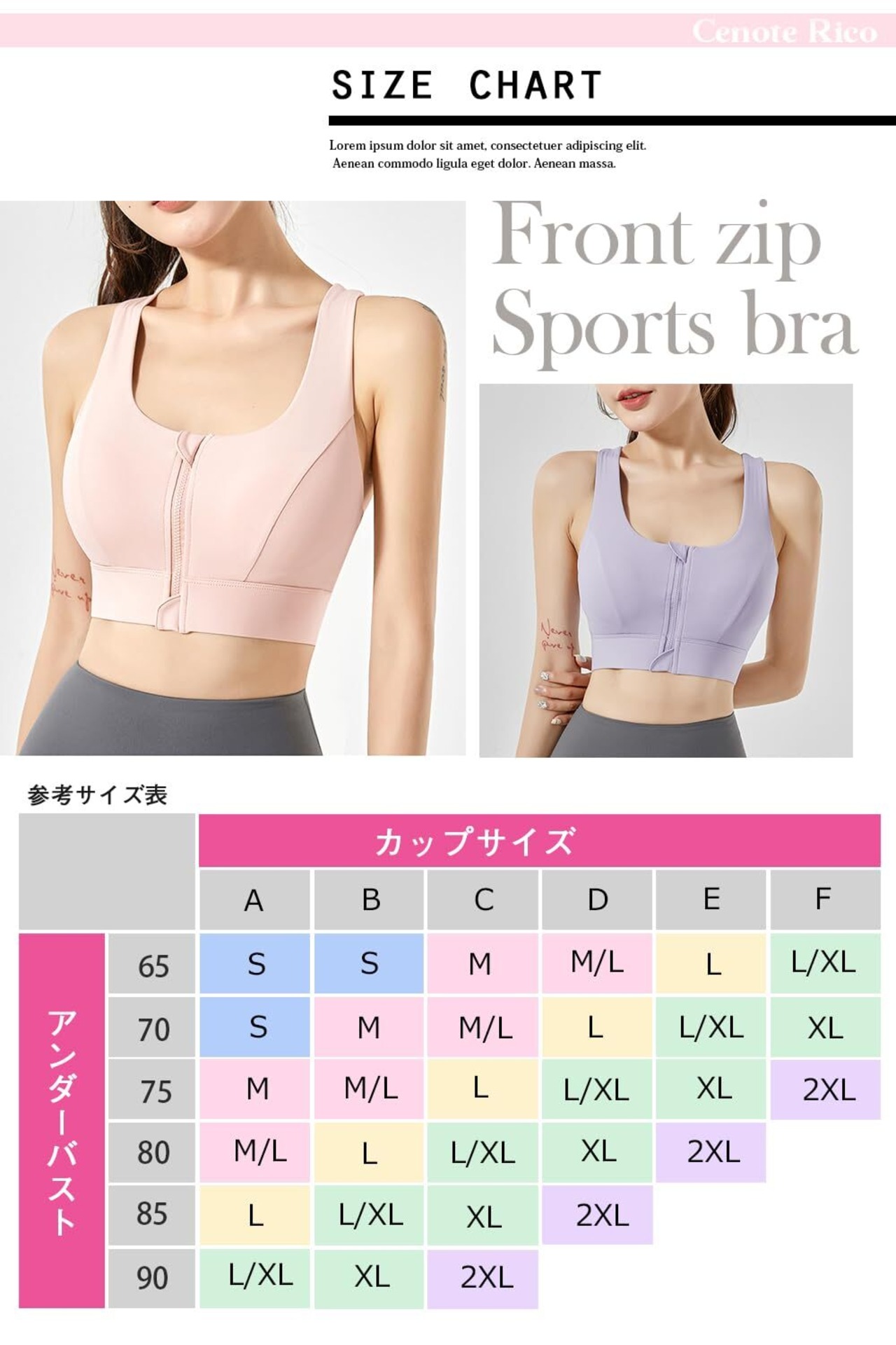[Cenote Rico] 【前開きで着脱簡単】 スポーツブラ 揺れない ハイサポート パッド一体型 吸汗速乾 ランニング ジム スポブラ レディース 前開き