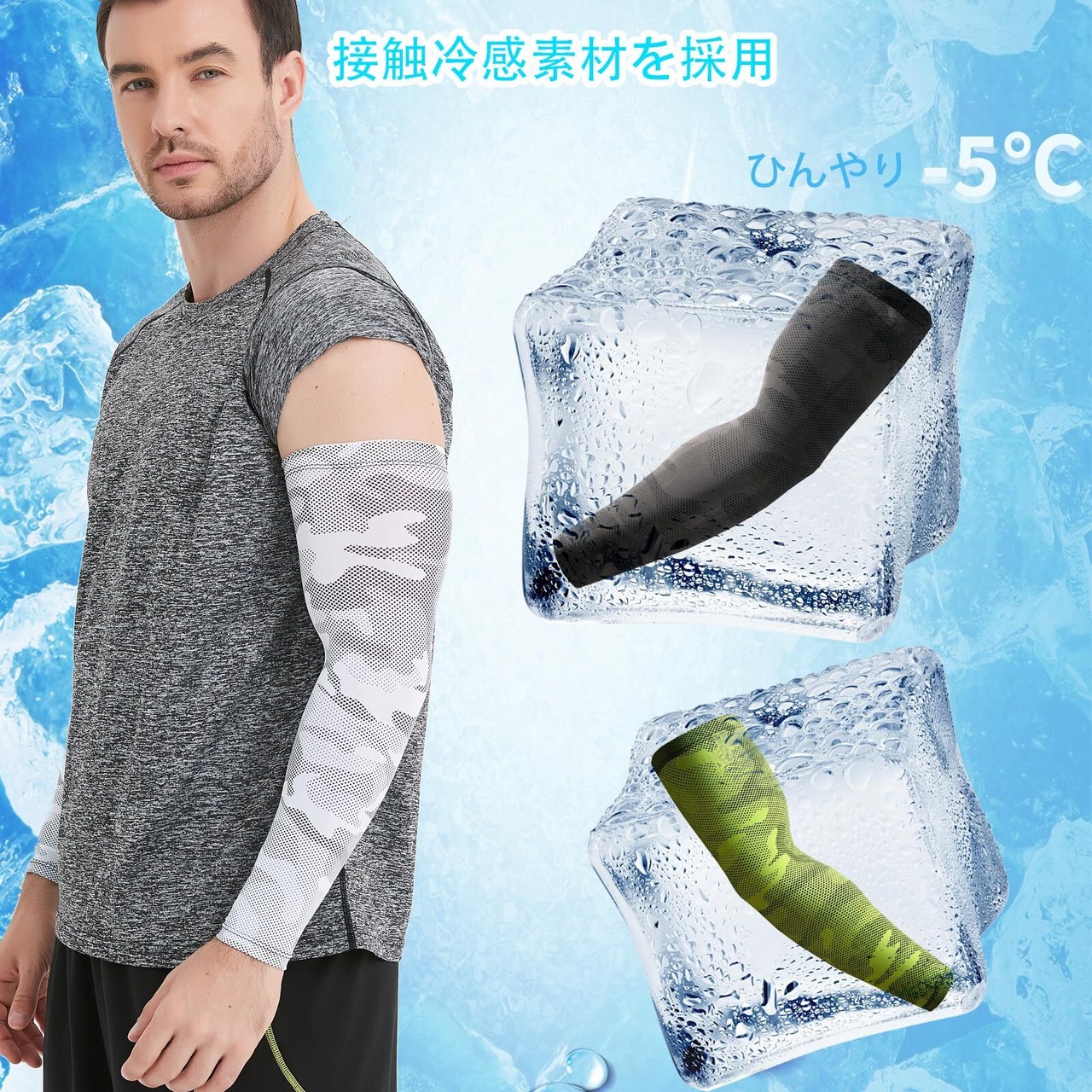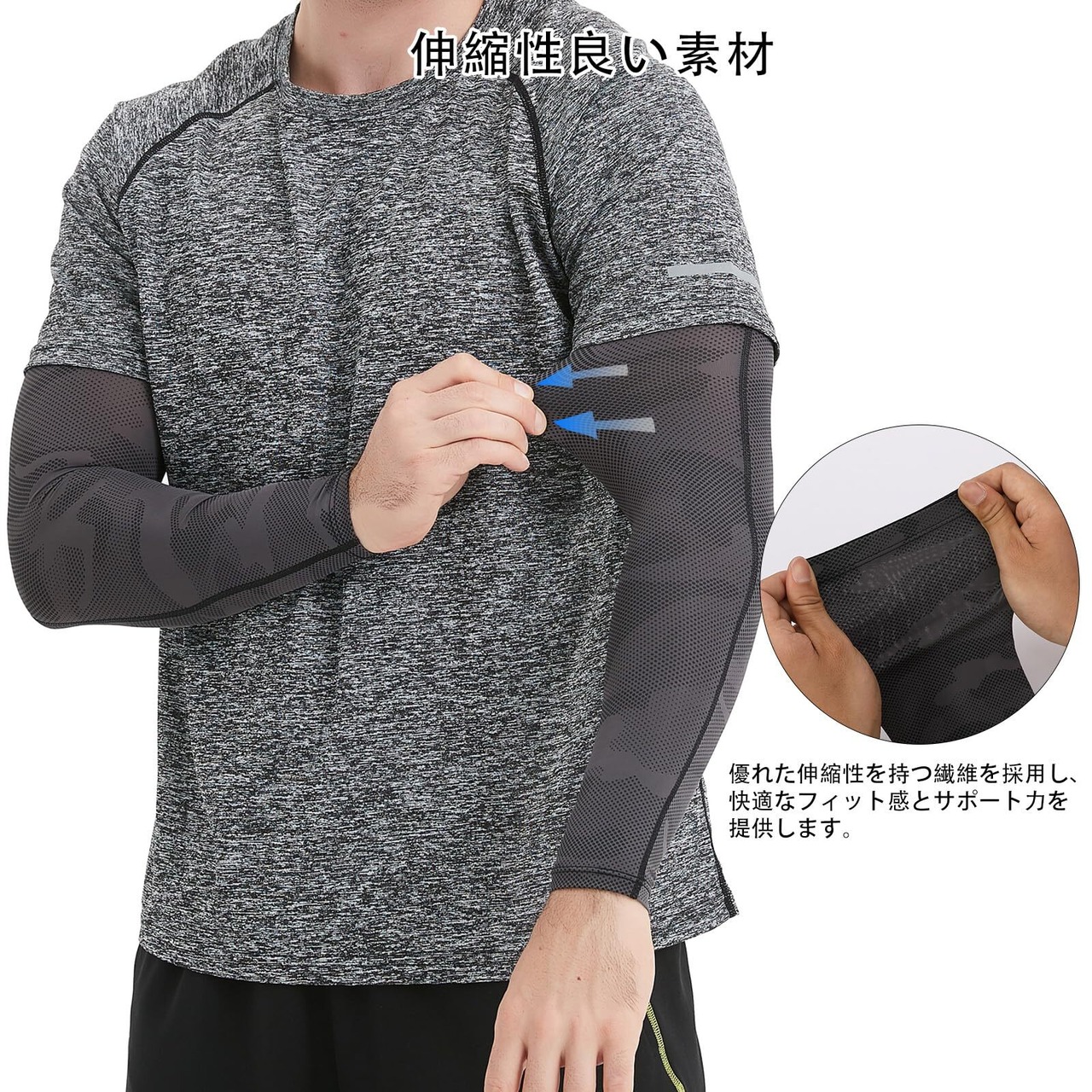 [CUBATTY] アームカバー メンズ 迷彩 カモフラージュ 冷感 着圧アームカバー 腕カバー uvカット UPF50+ 滑り止め付き 吸汗速乾 サバゲー 野球 ゴルフ ランニング 登山 バイク 釣り スポーツ 作業用 アームスリーブ