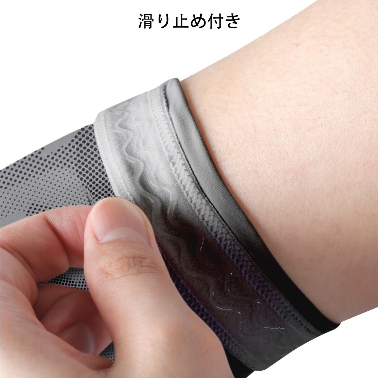 【安定の滑り止め】アームカバーの上腕口には滑り止めシリコンが加工され、腕をしっかりと固定し、激しいスポーツ中でもズレを防止。