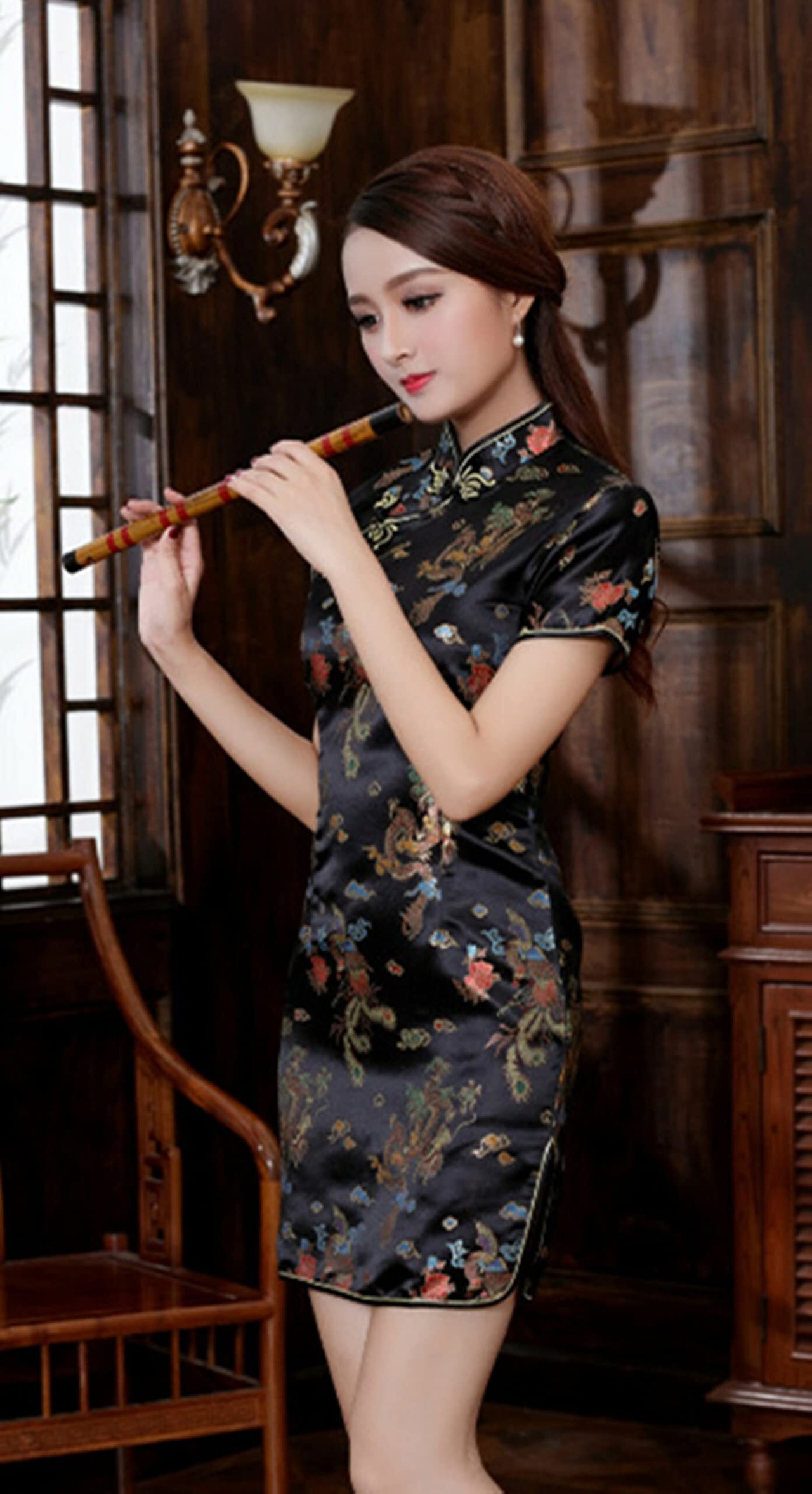 【選べる柄と丈感】中華テイスト満点の龍鳳と梅花柄が選べるコスパ抜群のチャイナドレス!丈もロングとミニが選べます