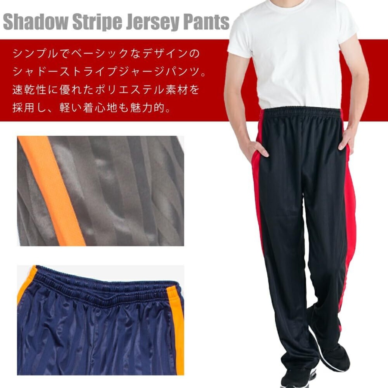 【速乾性と耐久性に優れたポリエステル素材】 このジャージパンツには、シワになりにくく速乾性に優れたポリエステル素材を100%使用。 湿気を吸いにくい特性により、洗濯後も乾きが早く、忙しい日常の中でのメンテナンスが簡単です。 さらに耐久性にも優れており、頻繁に洗濯しても型崩れしにくく、スポーツやアウトドアシーンでの過酷な使用にも長持ちします。 ポリエステル素材のサラッとした肌触りが、暑い日でも涼しく快適な着用感を提供します。 【シャドーストライプが際立つスタイリッシュなデザイン】 派手すぎないシャドーストライプ柄が、スポーツウェアにほどよいアクセントをプラス。 シンプルなデザインなので、カジュアルからスポーティーなスタイルまで幅広くコーディネートに馴染みます。 上にTシャツやトレーナー、パーカーなど、さまざまなトップスと相性が良く、ちょっとした外出にもおしゃれに決まる一着です。
