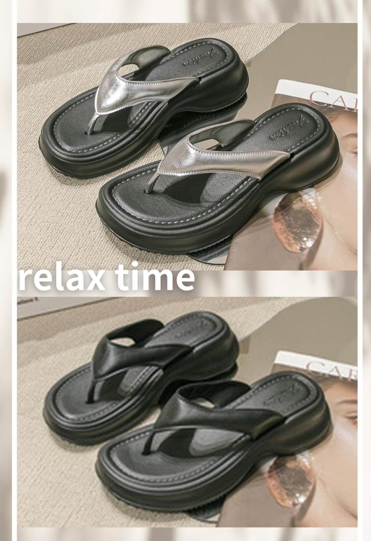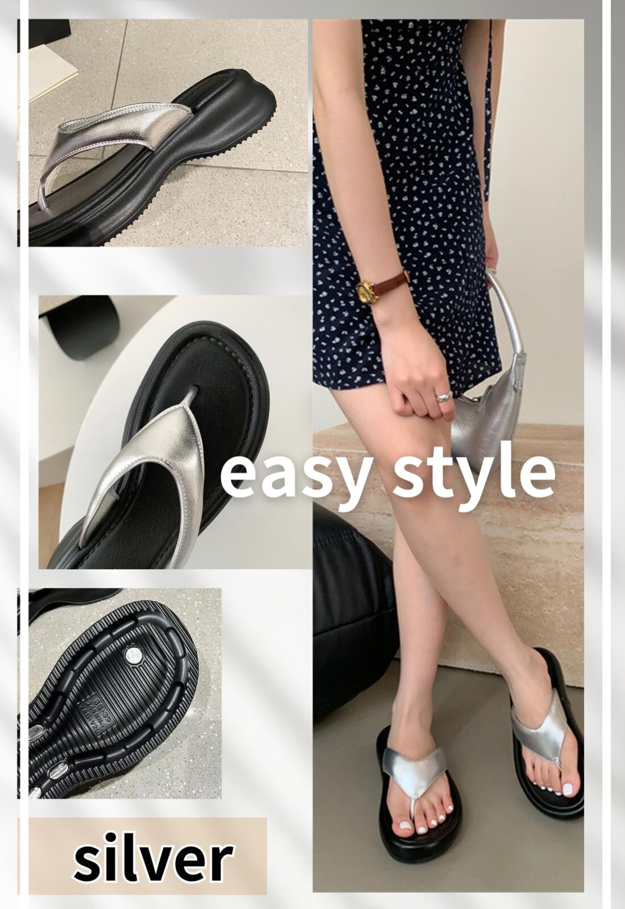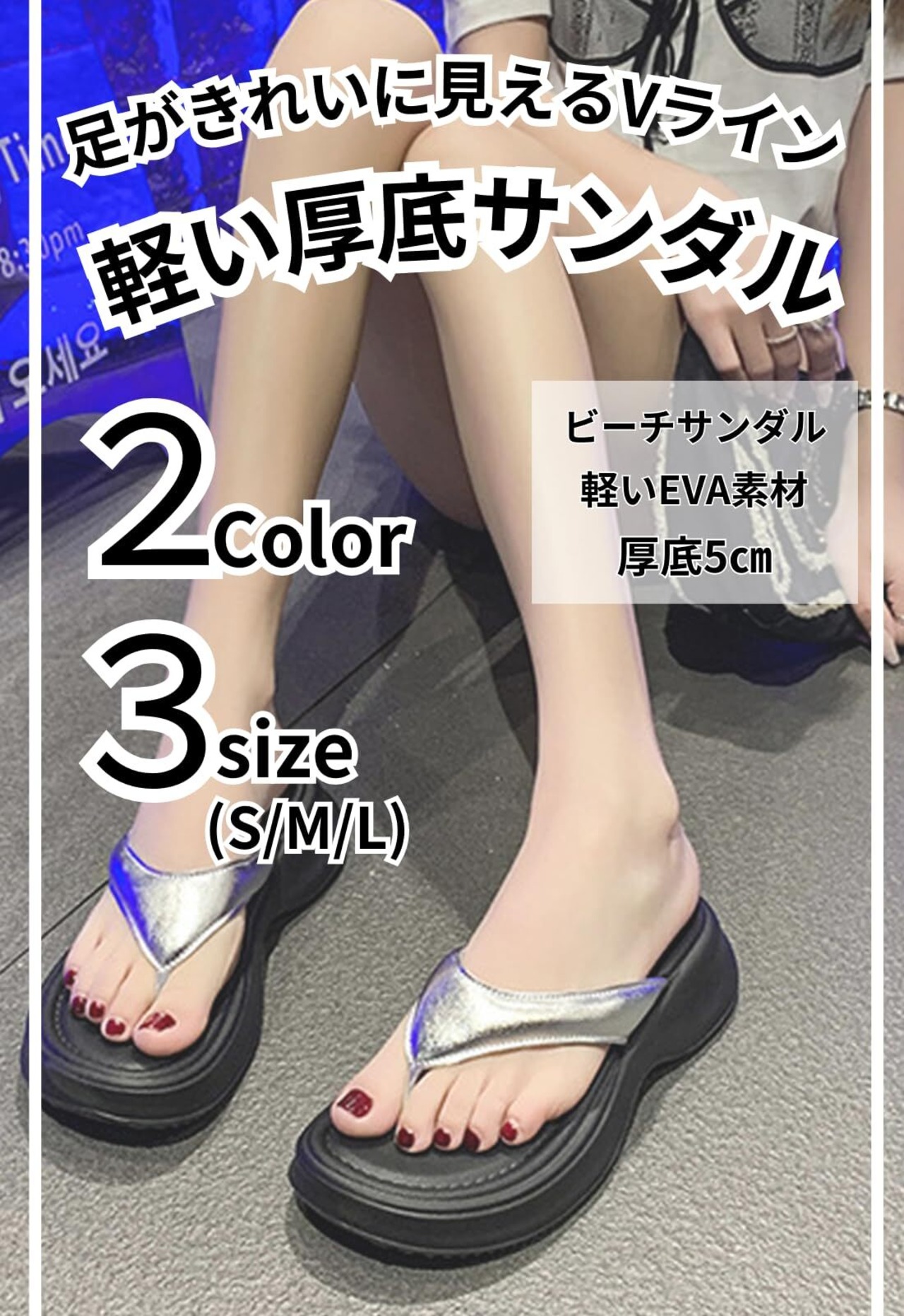 [kanaelun] サンダル レディース 厚底 軽い ビーチサンダル ビーサン オープントゥ シンプル 2カラー ブラック シルバー